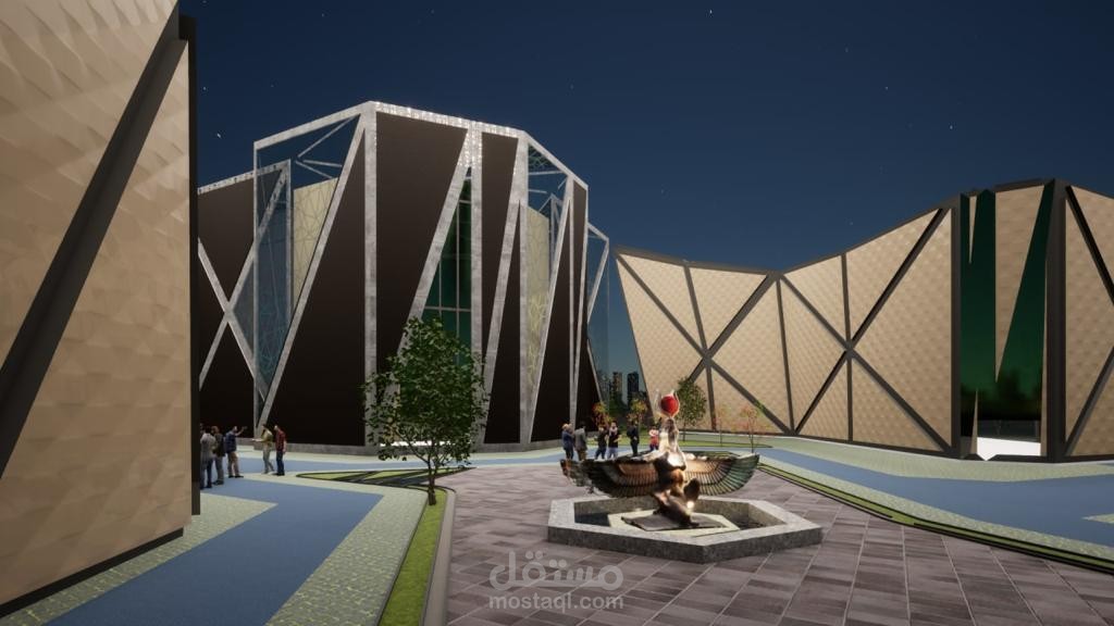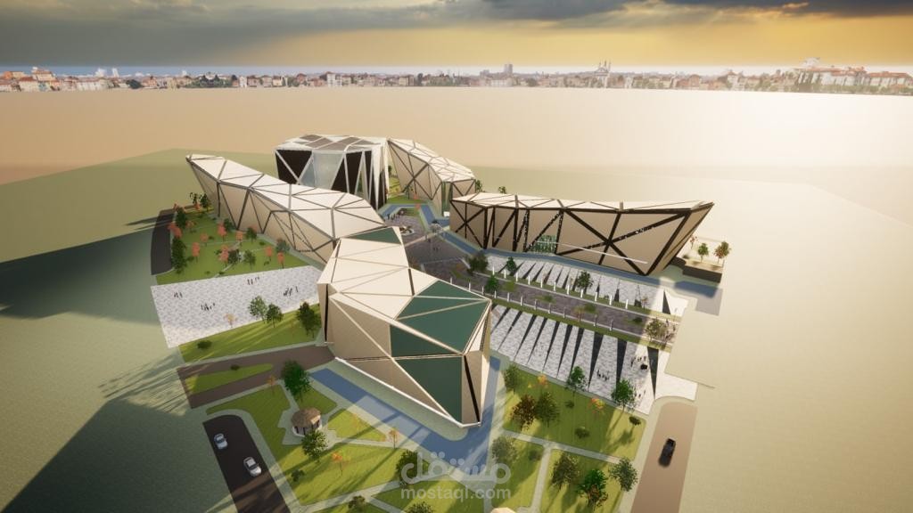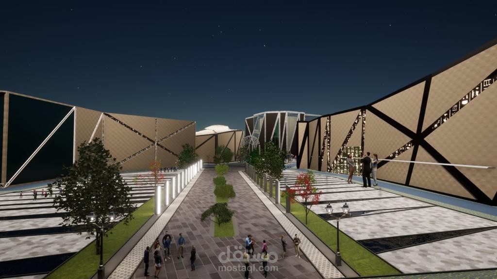تم مراعاة عناصر الاستدامة في المبنى والظروف المناخية لموقع المشروع .. استخدمت عناصر مائية لتقليل حرارة الجو داخل المشروع واستخدمت الوان فاتحه في الواجهات لتعكس اشعة الشمس واستخدمت ارضيات مولدة للطاقة الكهربائية في المحور الاساسي للمشروع وايضا عند اعلى اسطاع شمسي في الارض استخدمت خلايا الطاقة الشمسية ليكون المشروع مستدام ويخدم نفسه واحتياجاته من الطاقة الكهربائية بالعناصر المتجددة