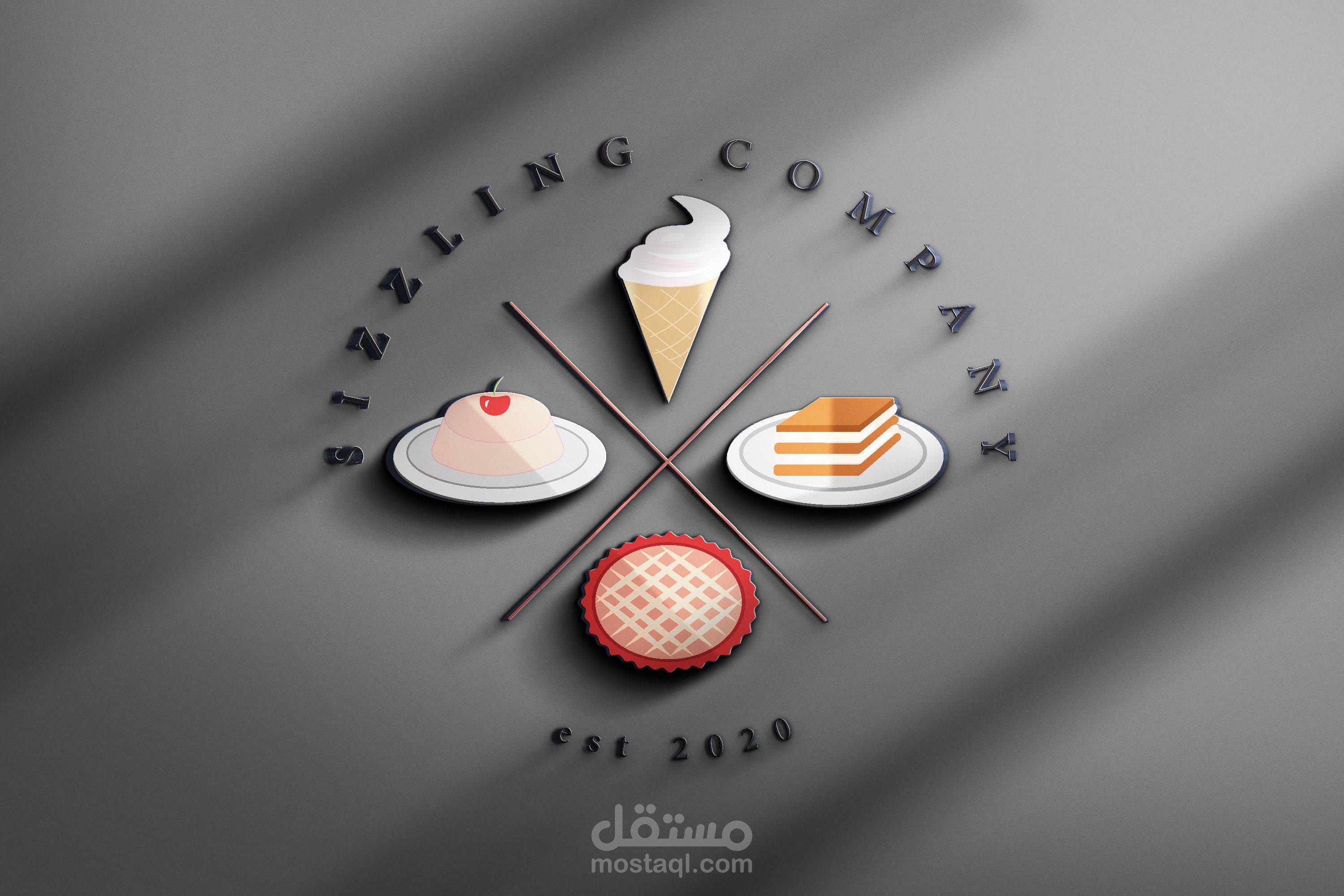 تصميم شعار لمحل حلويات يحمل اسم sizzling باستخدام Adobe illustrator وAdobe photoshop
