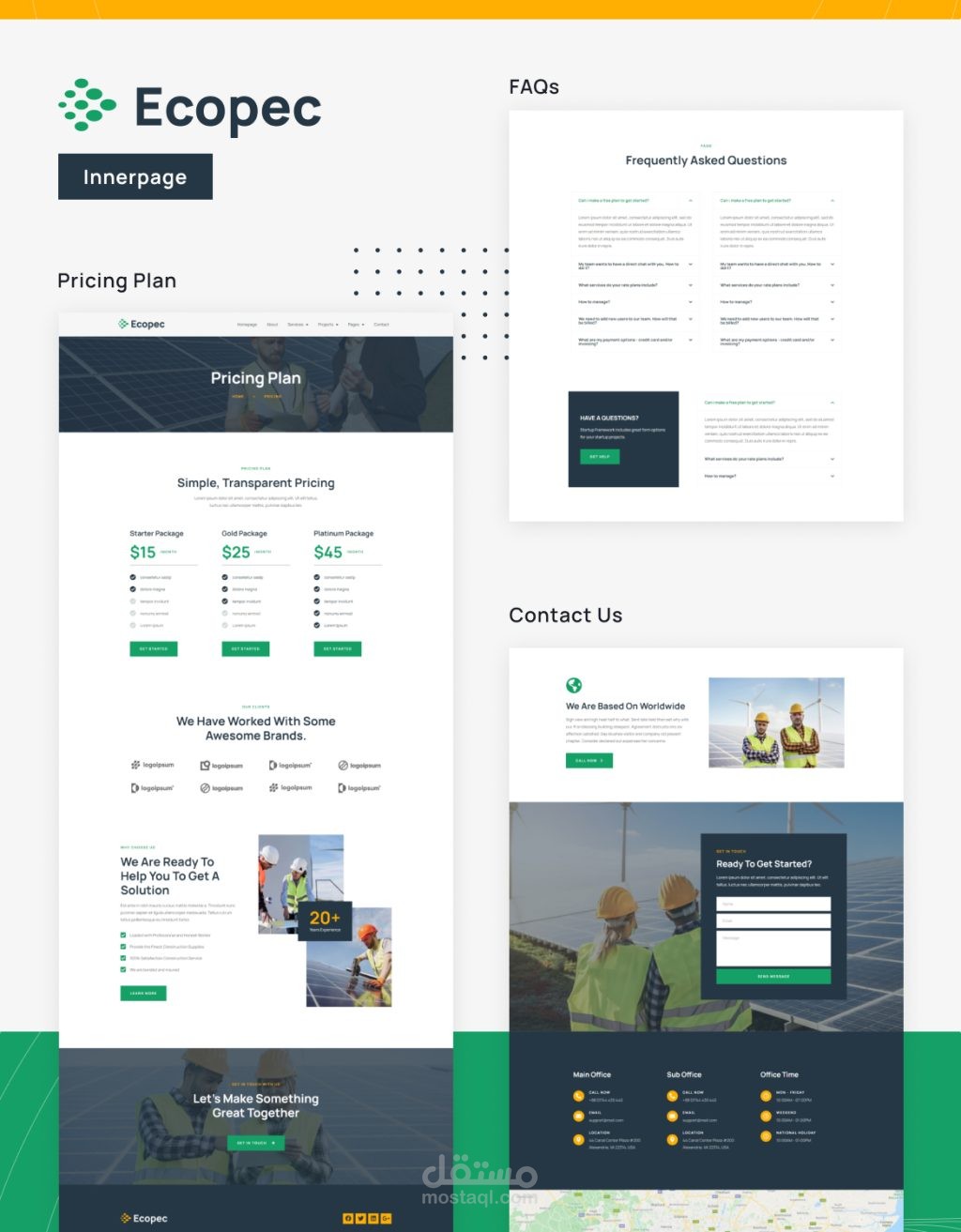 موقع الاعمال و عنصر الطاقة الشمسية مصممة خصيصًا المؤسسات المهتمه بي للطاقة الشمسية وطاقة الرياح أو الطاقة الخضراء