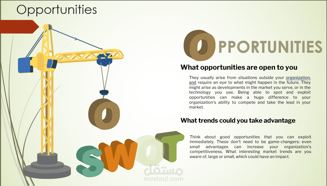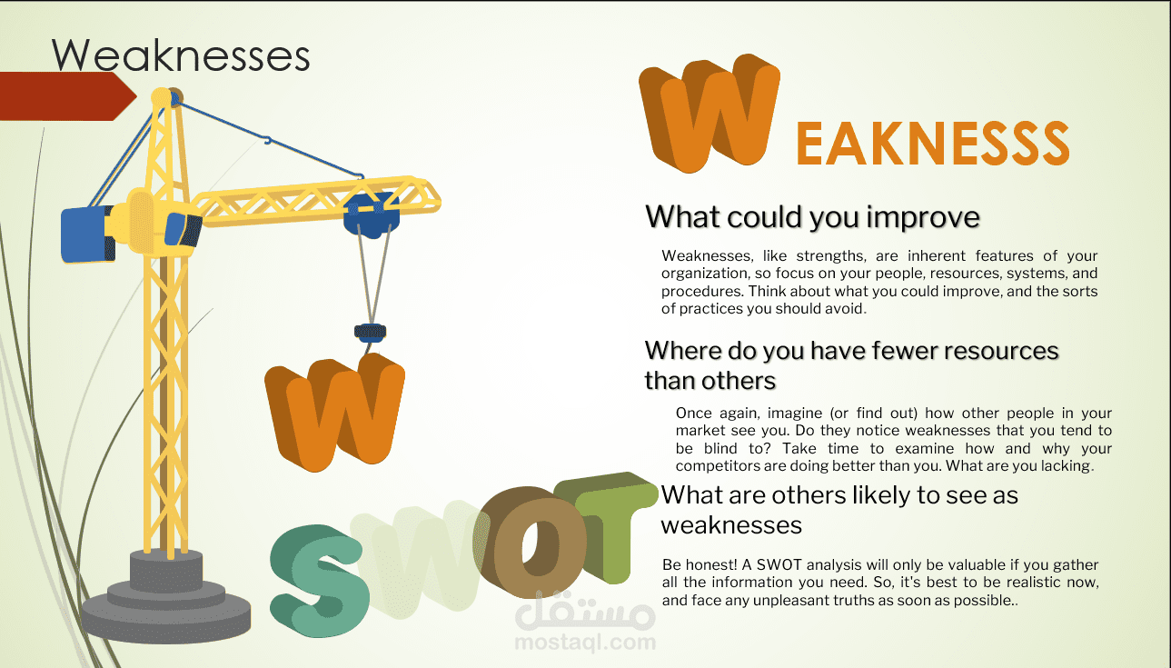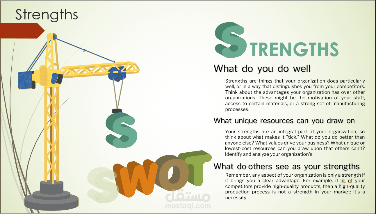 SWOT هو خطة يمكن أن تساعدك على تحليل ما تفعله شركتك الآن ، وإنشاء استراتيجية ناجحة للمستقبل. لذا قمت