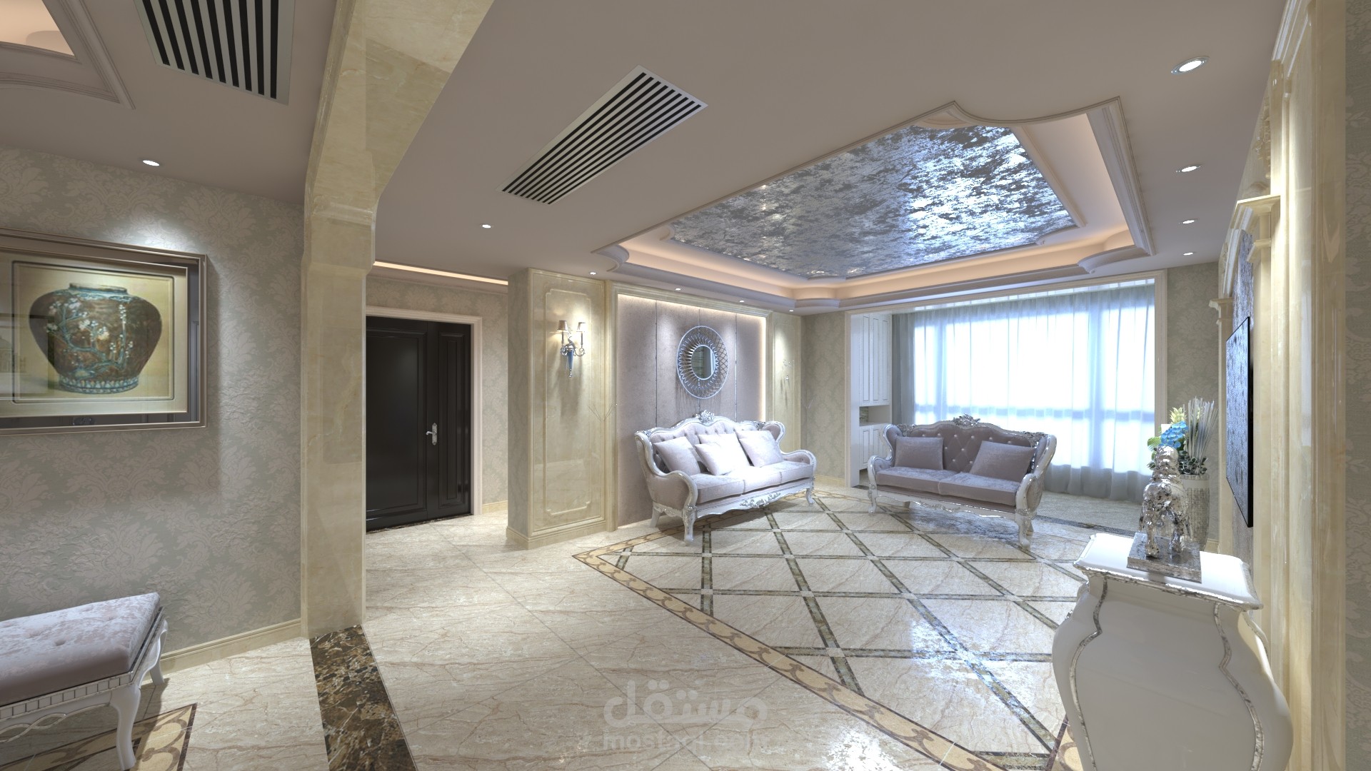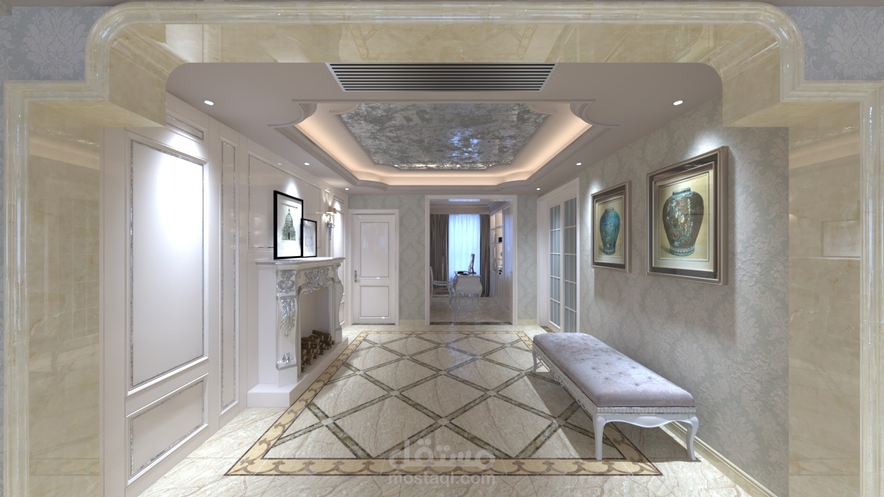 تصميم شقة مساحة 120 متر نيو كلاسيك