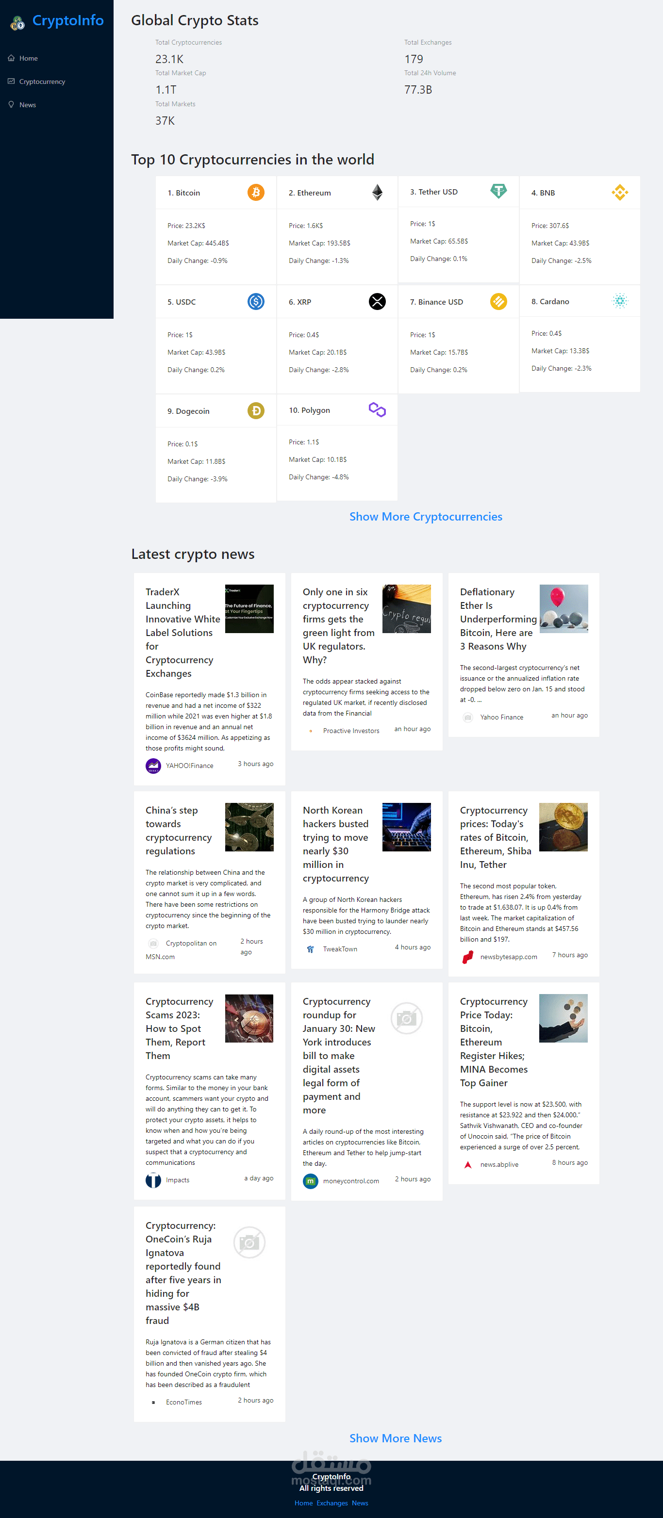 موفع لعرض بيانات سوق العملات المشفرة وأسعارها وأخر الأخبار الخاصة بها