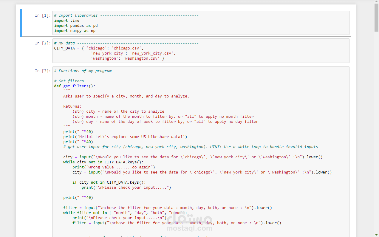 تحليل بيانات bikeshare باستخدام python لثلاث مدن :