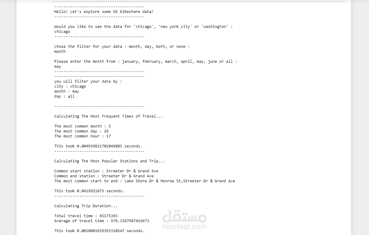 - حساب مدة الرحلة (اجمالي و متوسط الرحلة).