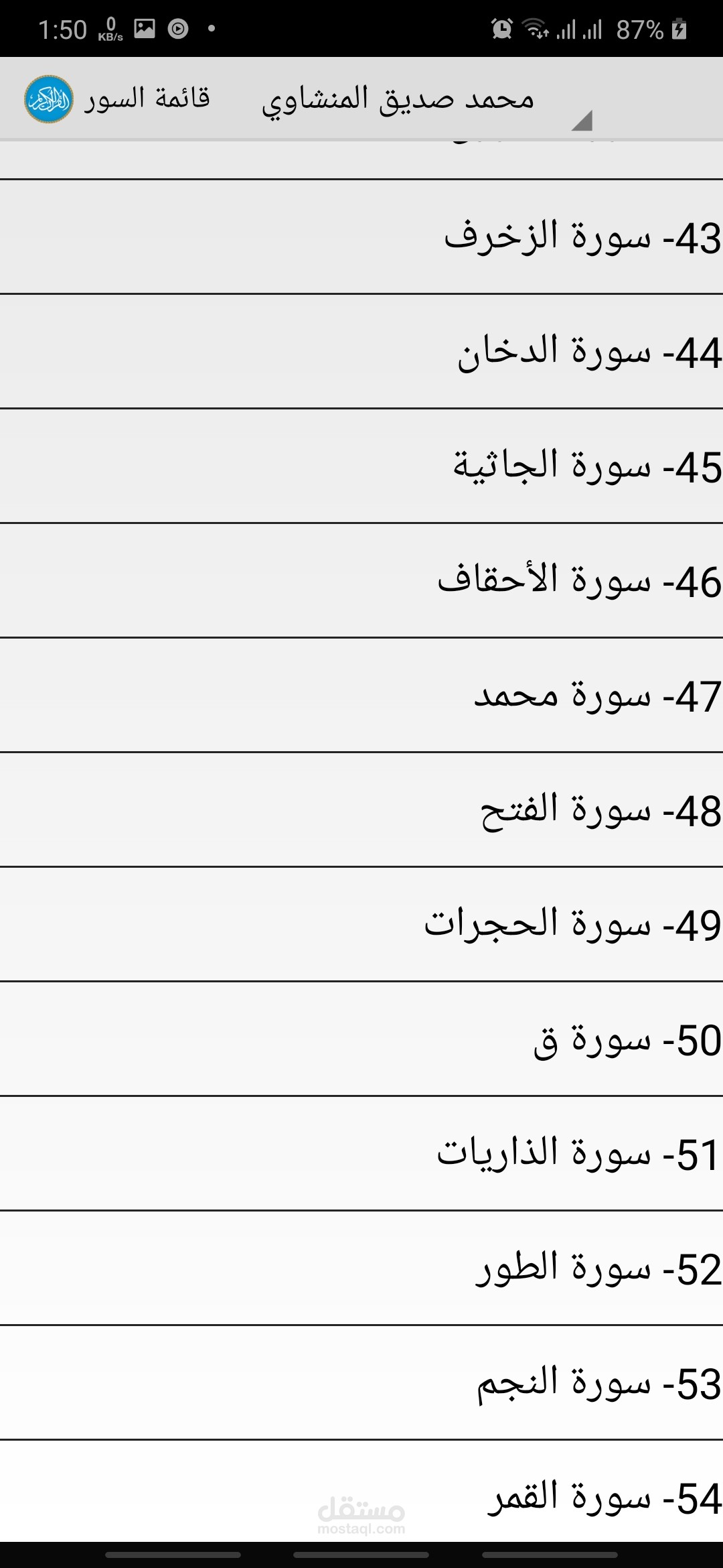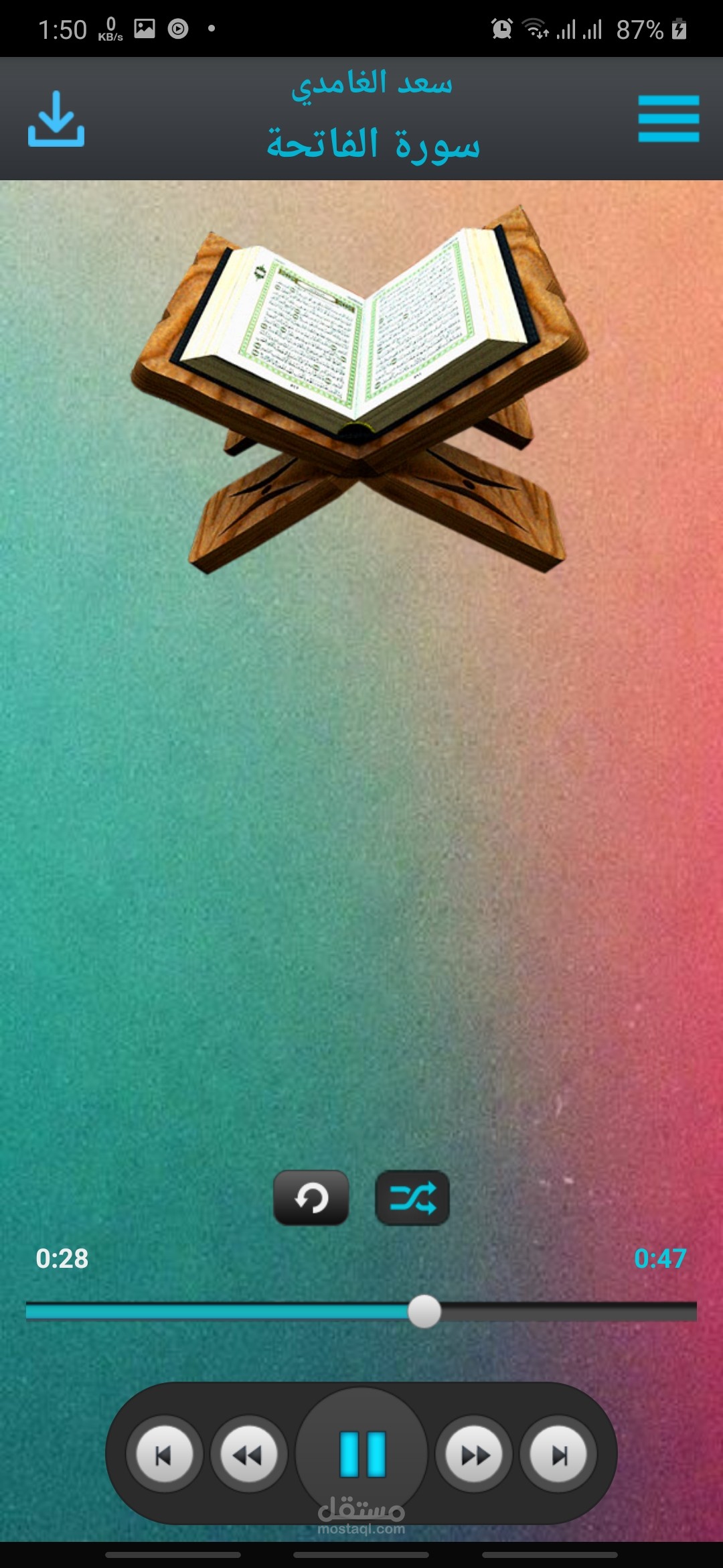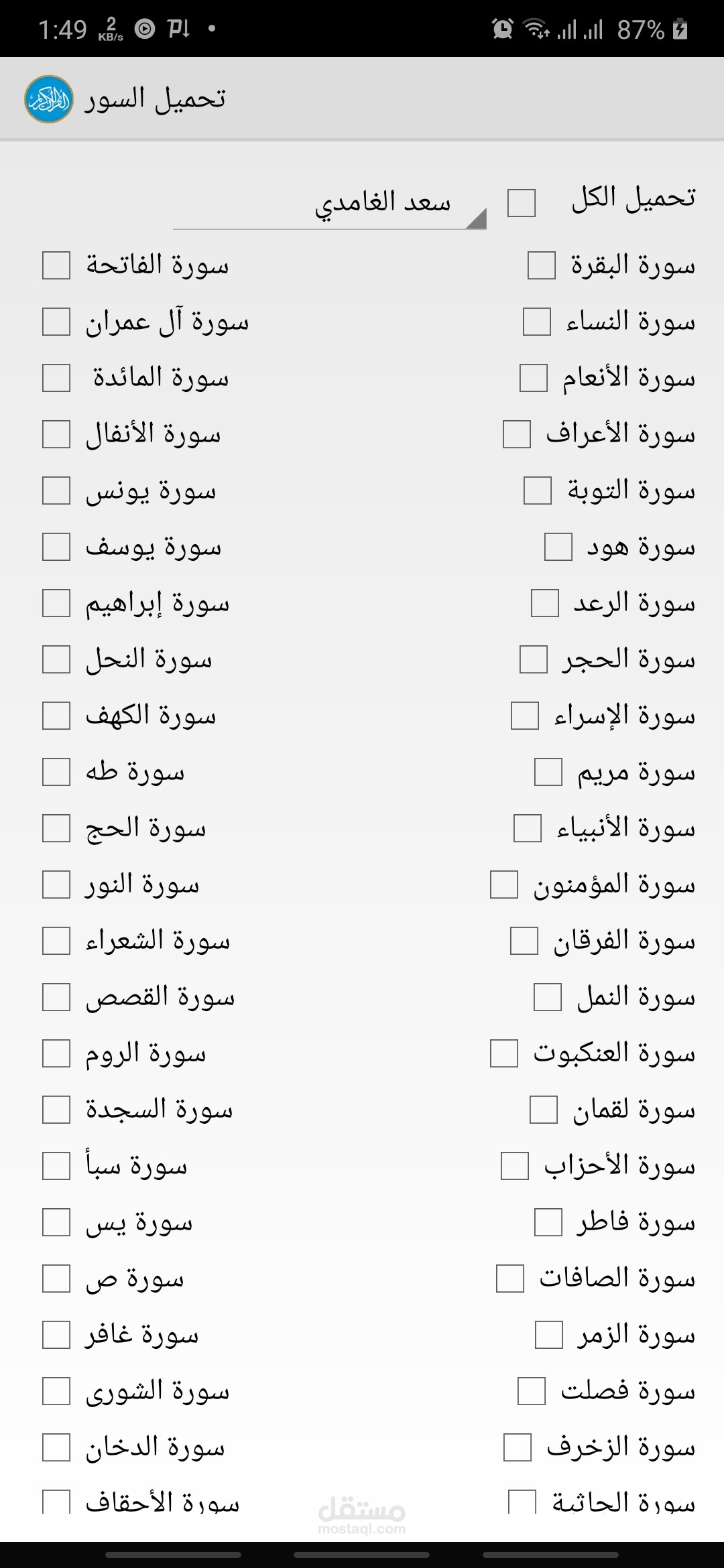 تطبيق أندرويد لتنزيل وتشغيل سور القرآن الكريم من قبل بعض القراء الأشهر باللغة العربية.