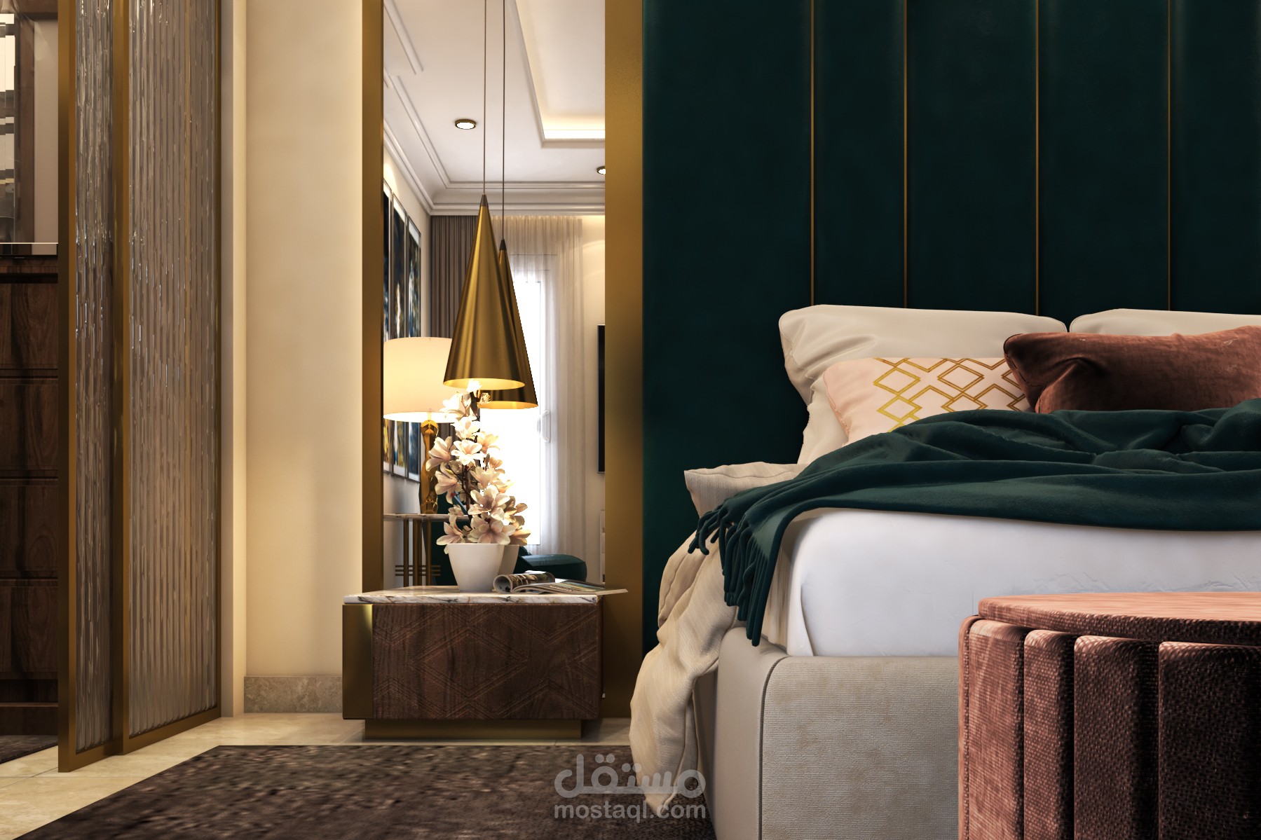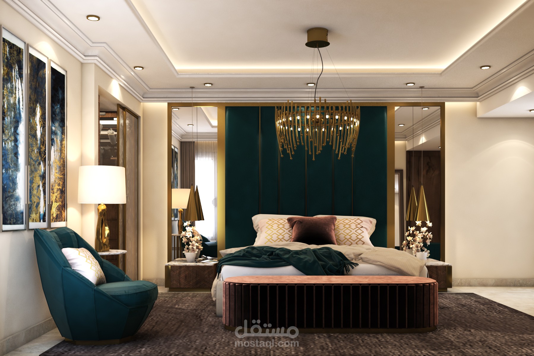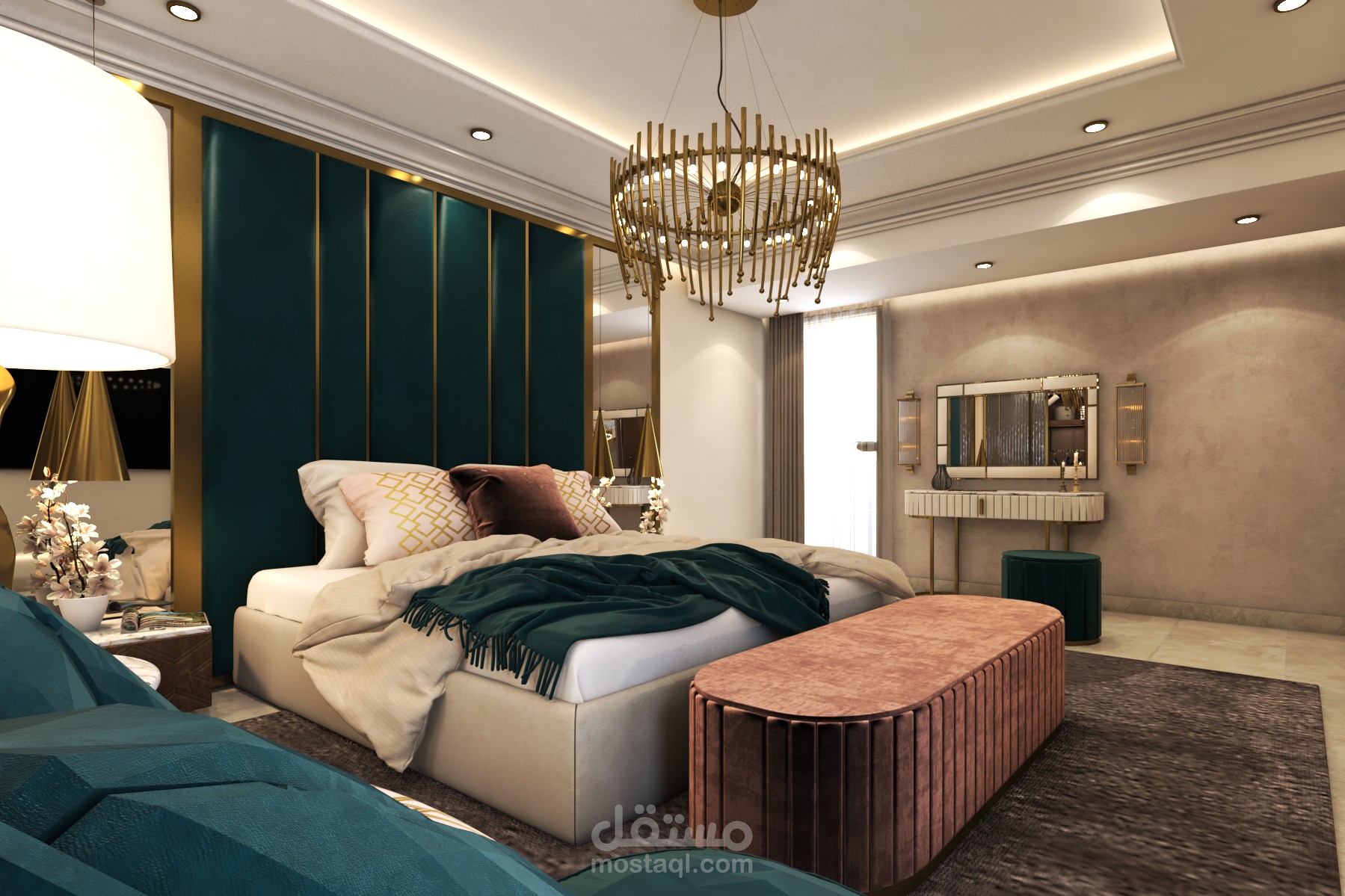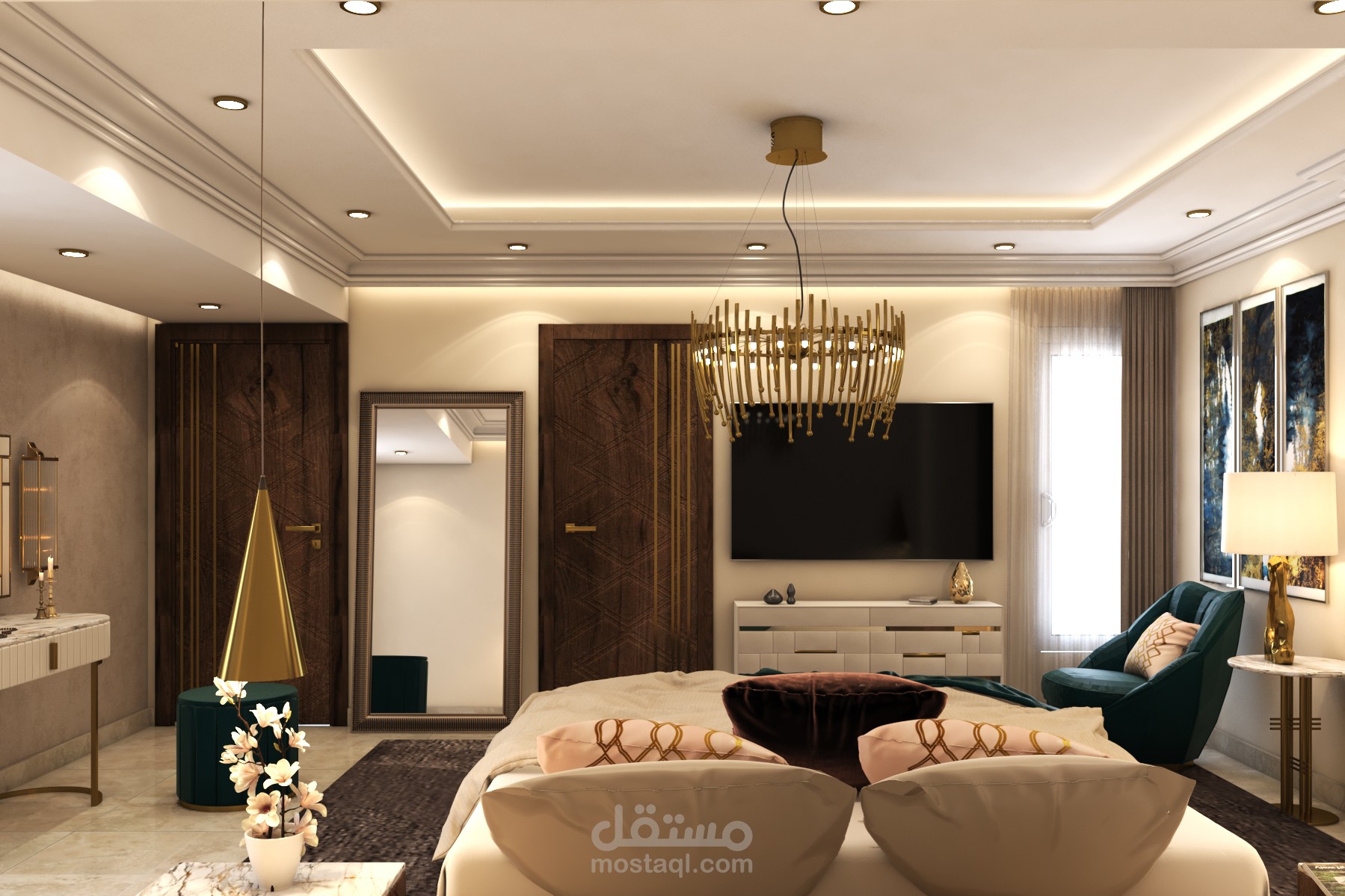 Residential apartment in October ,Egypt. This client wanted luxurious yet comfy design for his bedroom .