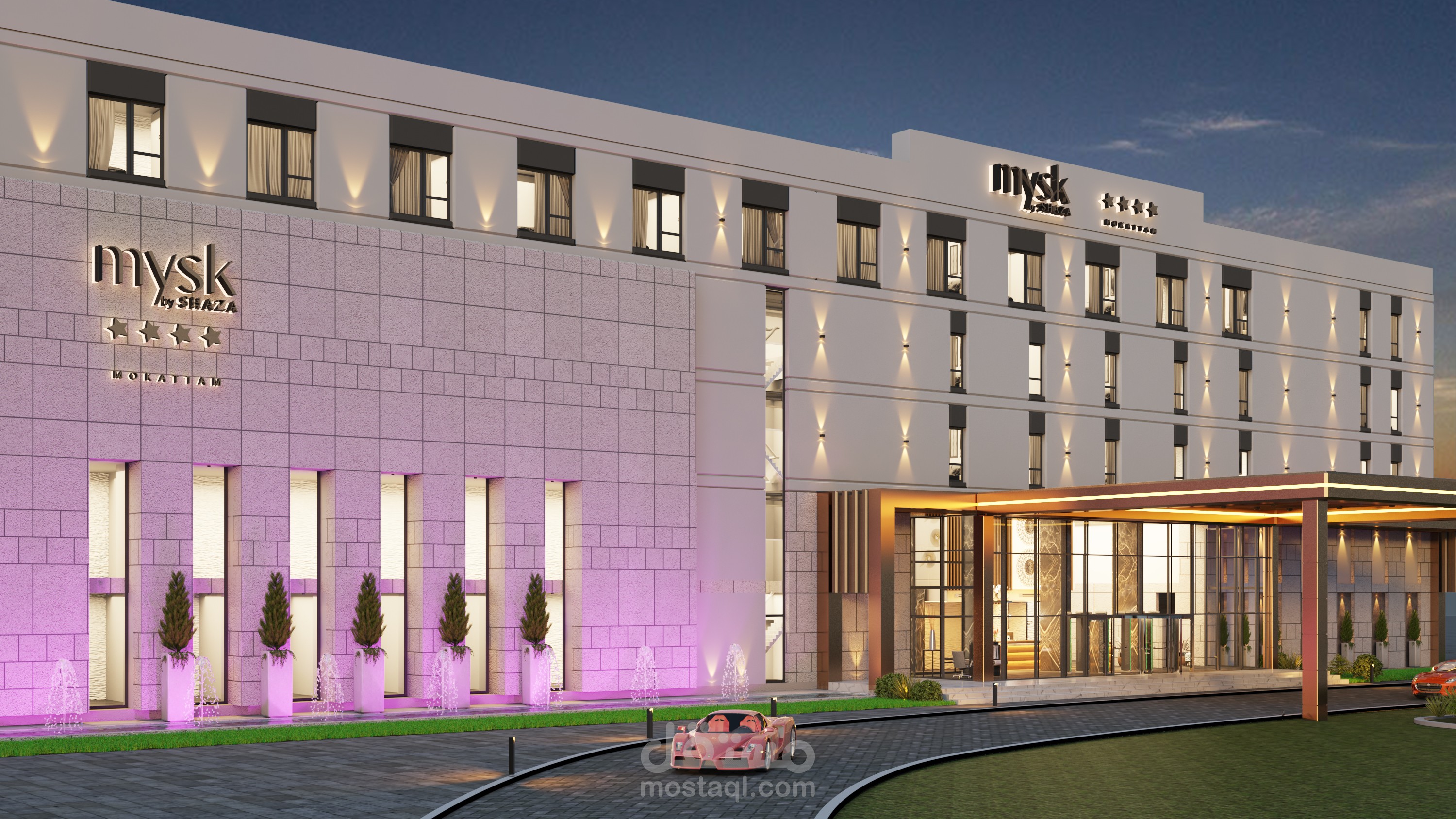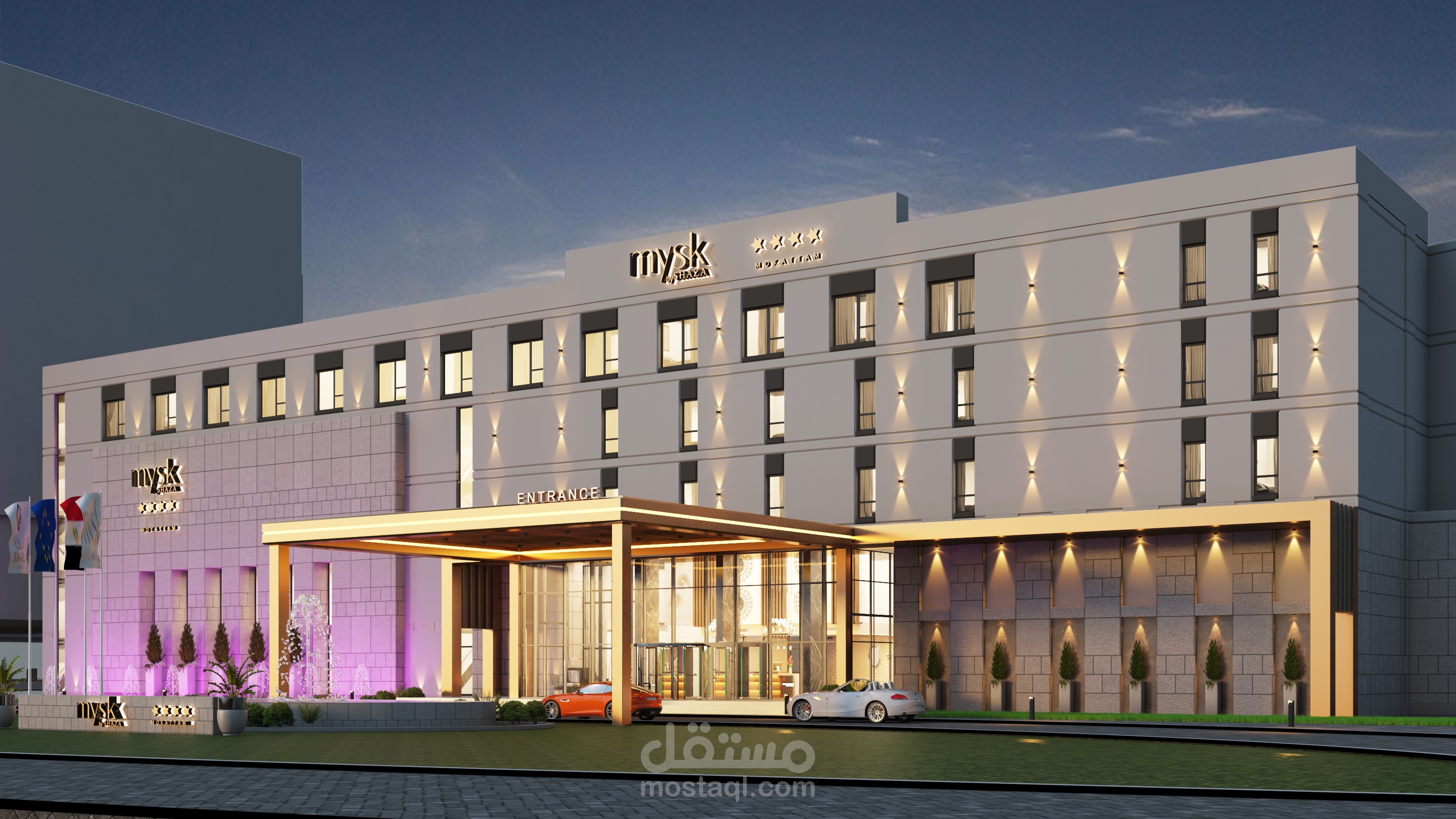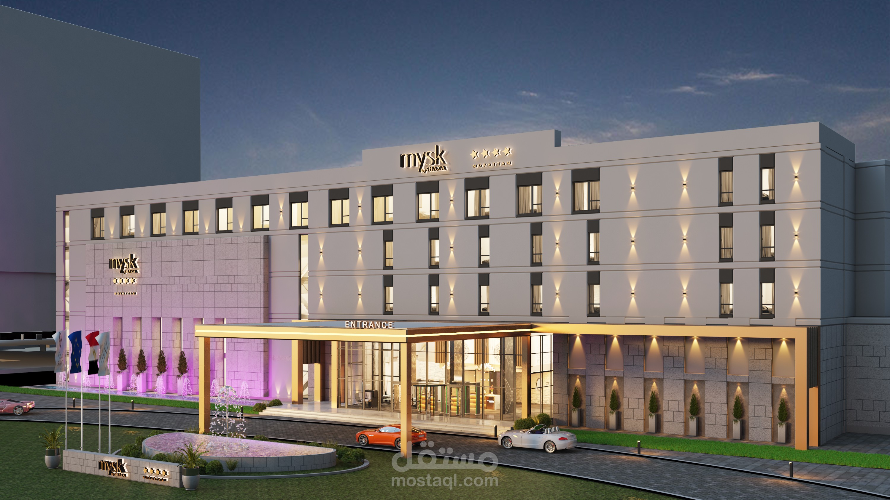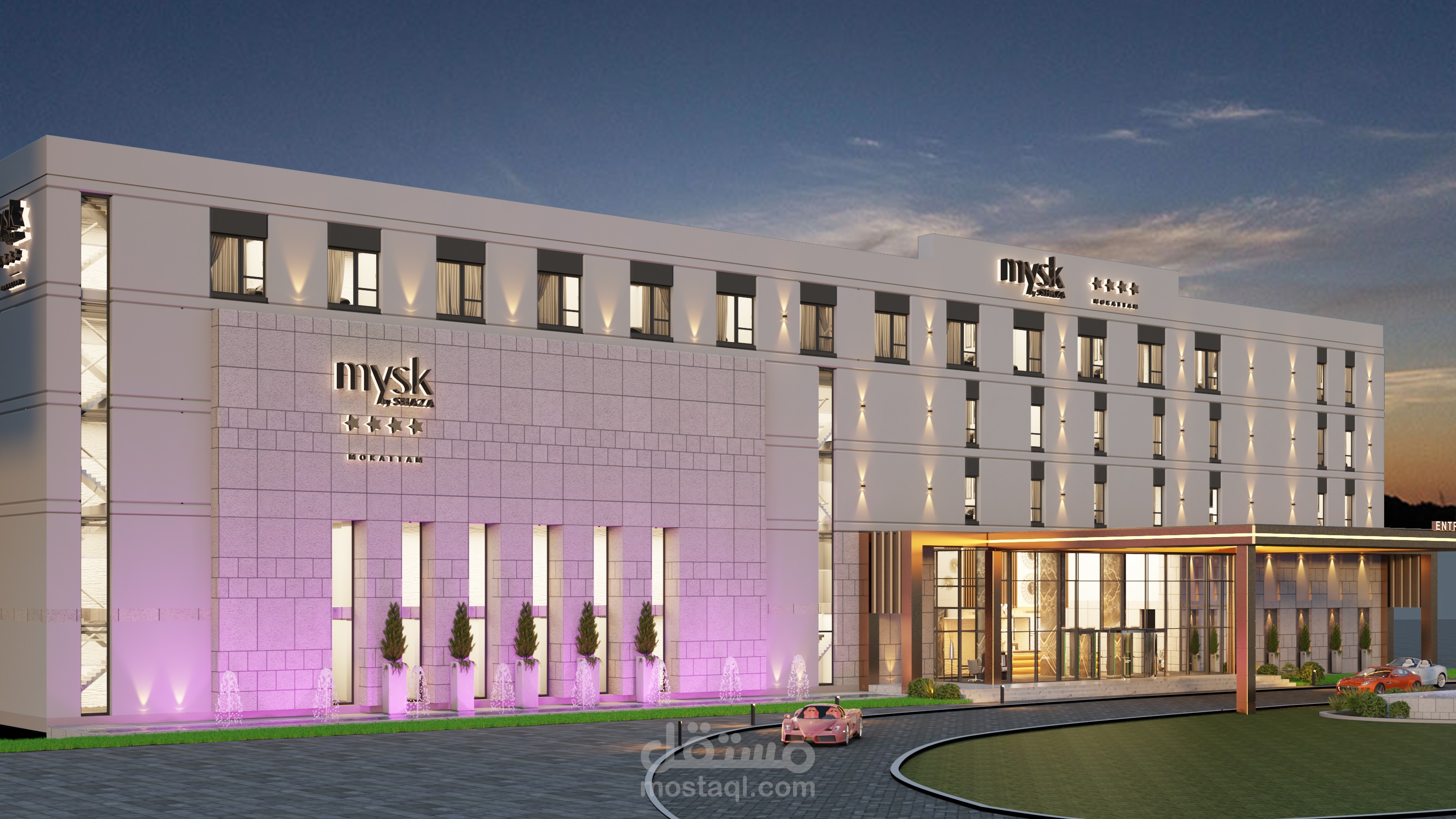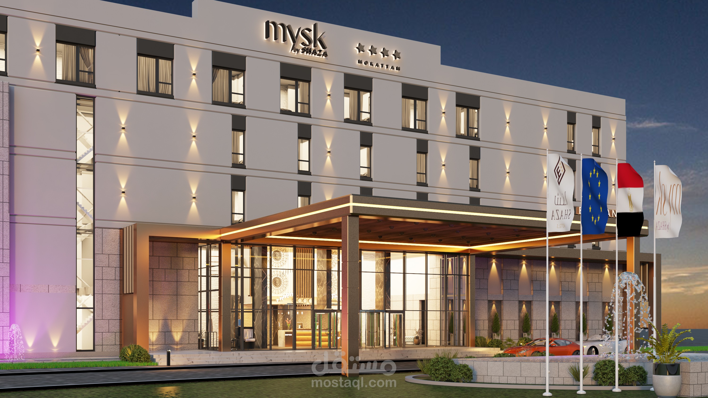 Design for Main elevation of exterior for a hotel in Egypt in Contemporary style