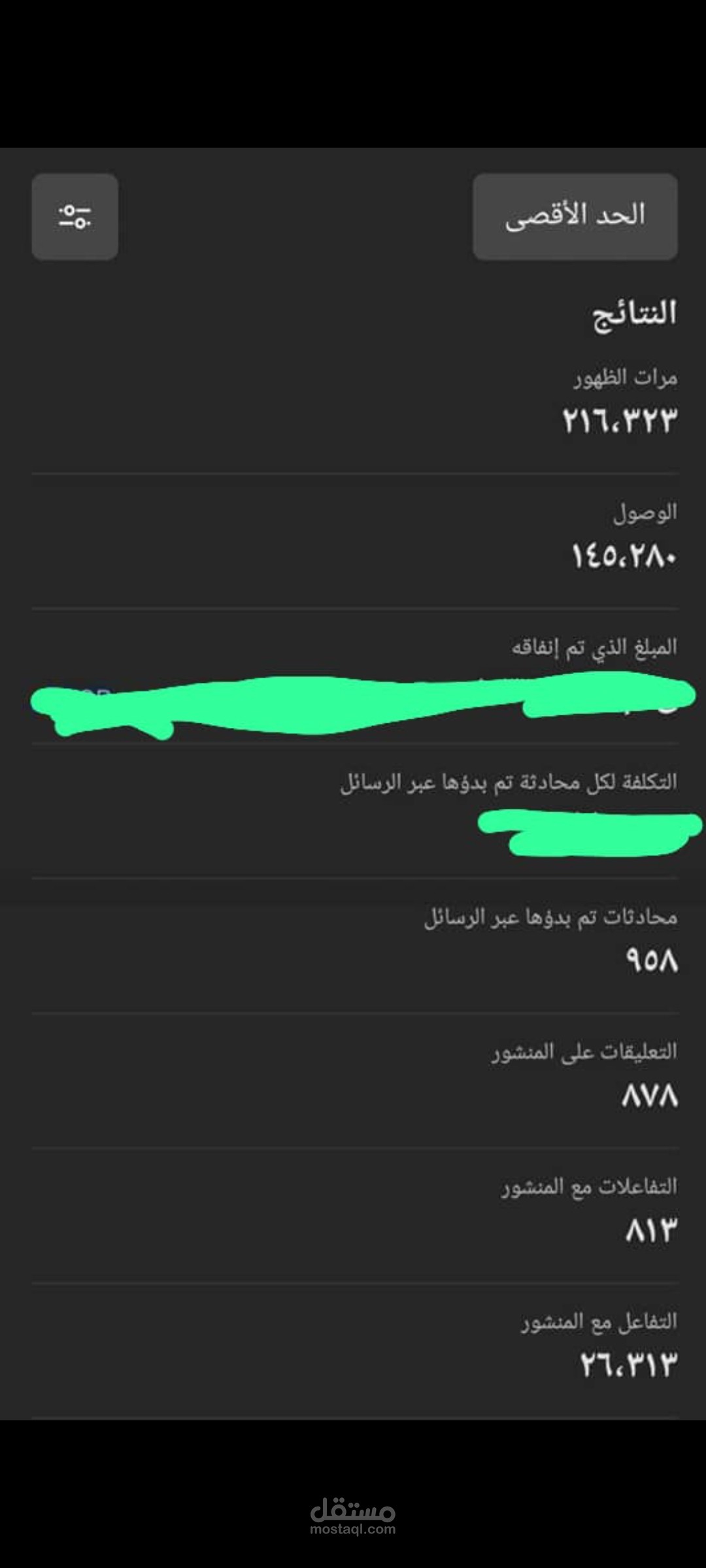 نتائج مميزة لبعض الصفحات المبتدئة علي السوشيال ميديا إستهداف جيد لما يحدده صاحب المشروع من حيث زيادة المتابعين ، زيادة الظهور ، زيادة الرسائل و المبيعات ، زيادة التفاعل .