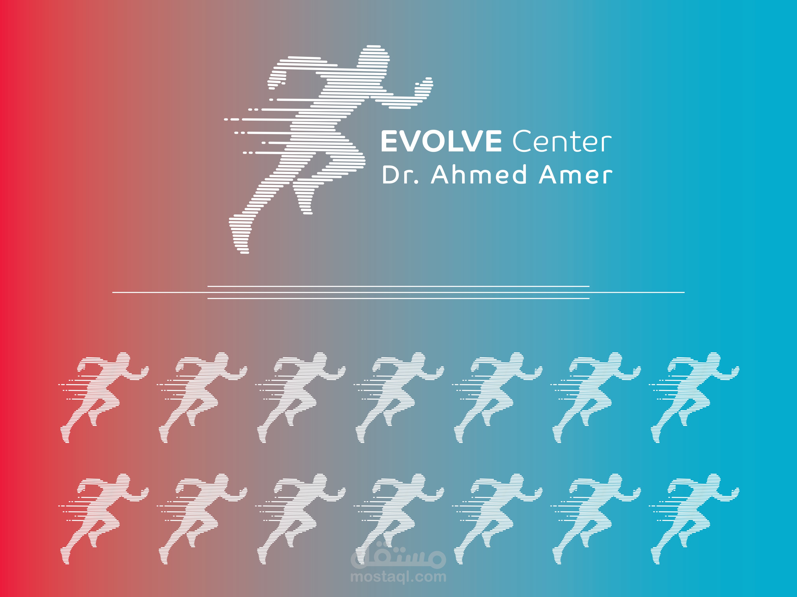 تصميم لوجو لمركز علاج طبيعيEvolve Center وتم تصميم الكروت والروشتات الطبية وكروت متابعة مرضى كمطبوعات ملحقة