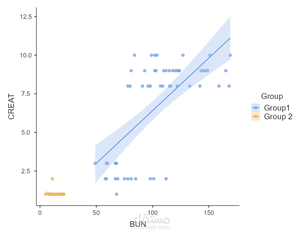 كما أيضا أجرينا ايضا علاقة ارتباط بين مستوى ال لBUN و creatinine