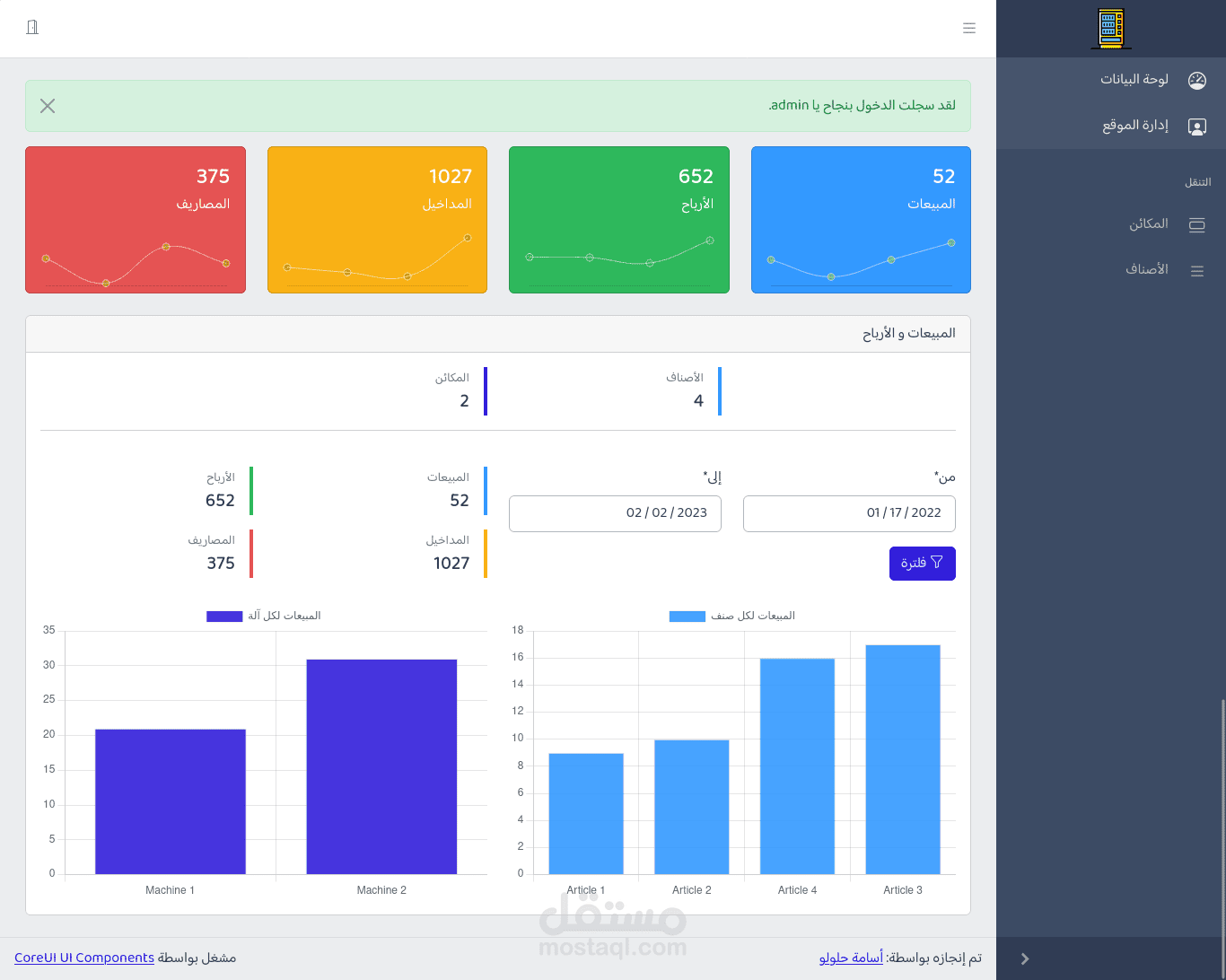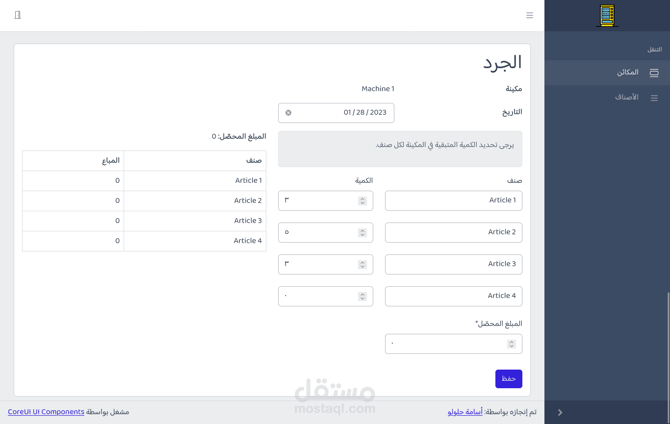 هذا المشروع عبارة عن تطبيق ويب لإدارة و متابعة مكائن البيع الذاتي، حيث يتيح للمدير التطبيق متابعة كميات الأصناف الموجود في المكائن و عدد المبيعات الإجمالي و المفصل حسب كل مكينة أو كل صنف مع إتاحة نظرة عامة حول المصروفات، المداخيل و الأرباح.