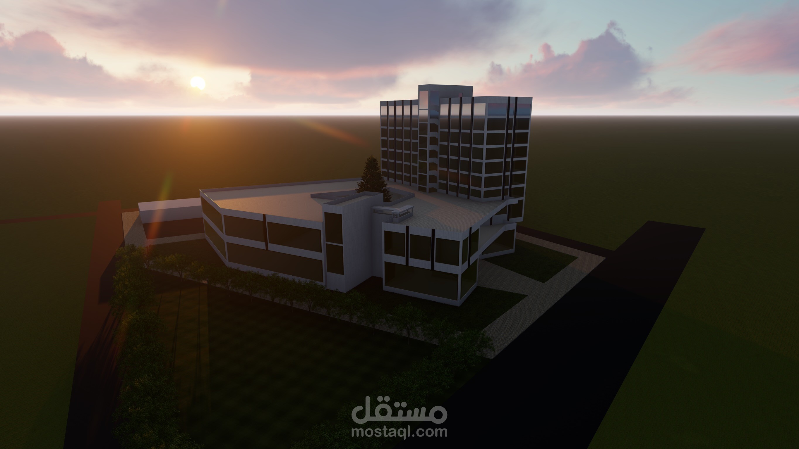 صممت هذا مشروع علا مبدا العمارة التفكيكية بحيث يرتكز مبنى للوظائف المكتبية فوق مبنا المول بمدخلين مختلفين