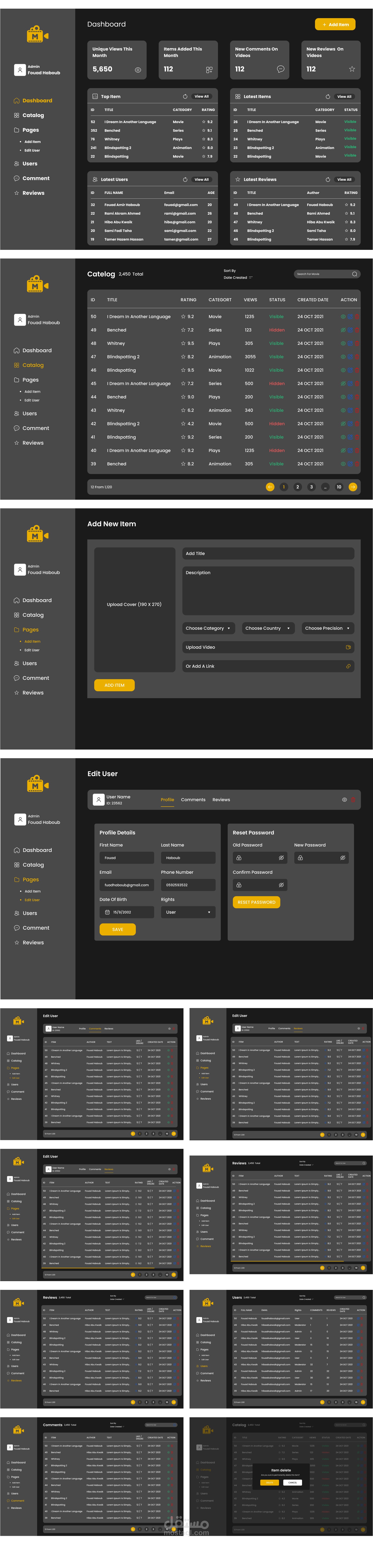 لوحة تحكم لصاحب موقع افلام يستطيع فيها ادارة المهام و المحتوى في الموقع