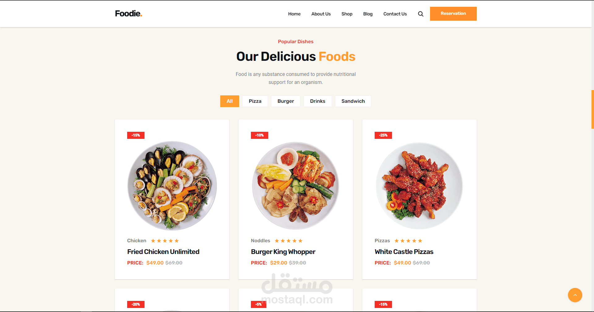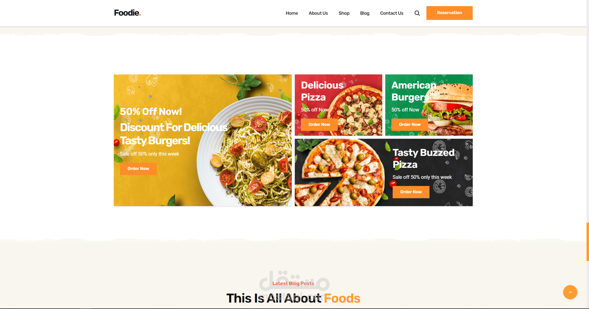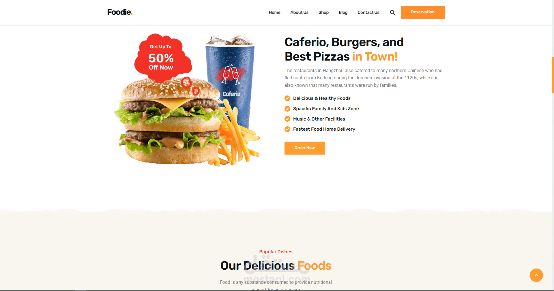 موقع الكتروني لمطعم يقدم اشهى المأكولات وافضل انواع البيتزا والدجاج المقلي في المدينة