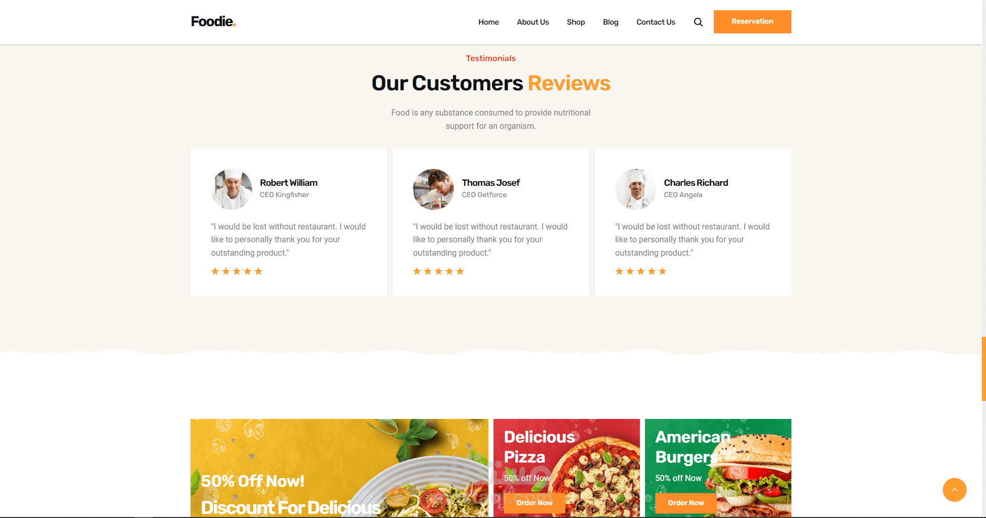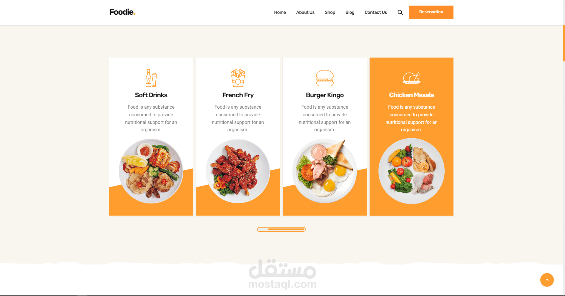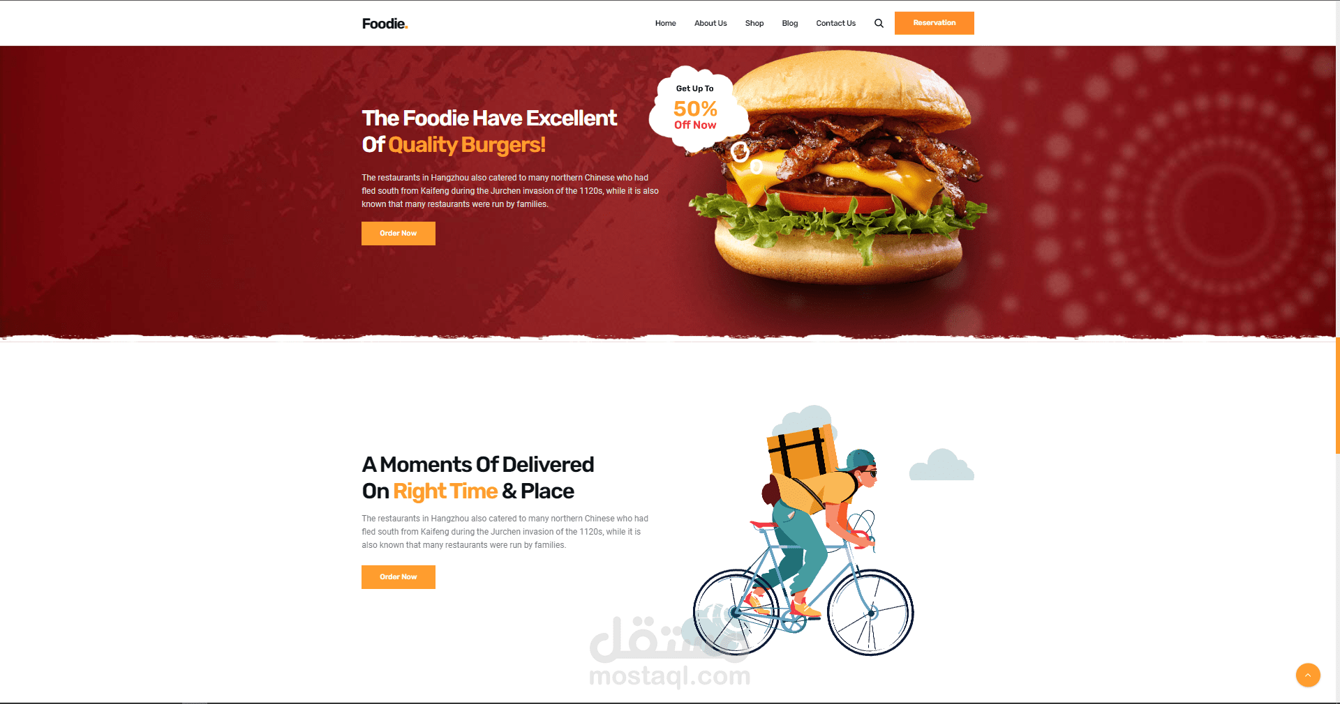 موقع الكتروني لمطعم يقدم اشهى المأكولات وافضل انواع البيتزا والدجاج المقلي في المدينة