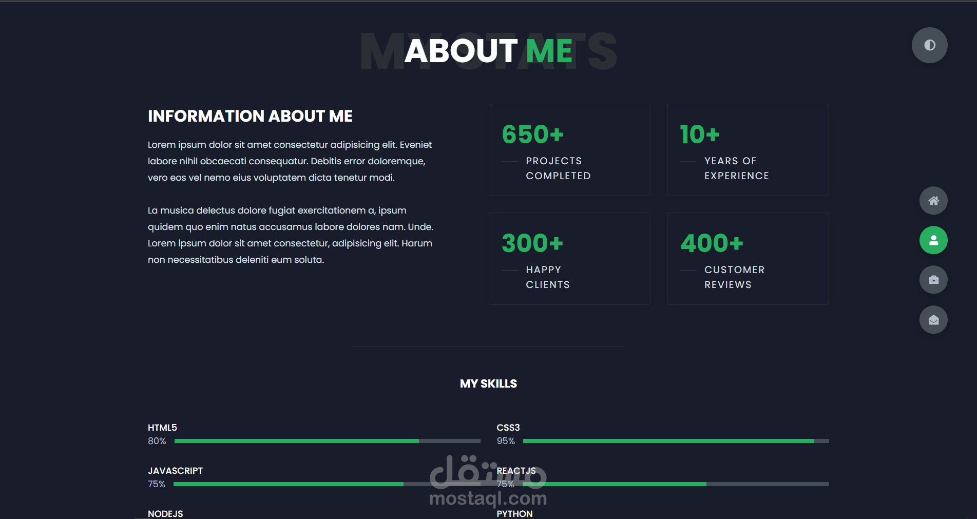 و يحتوي علي الخبرة و علي عدد المشاريع و علي عدد العملاء