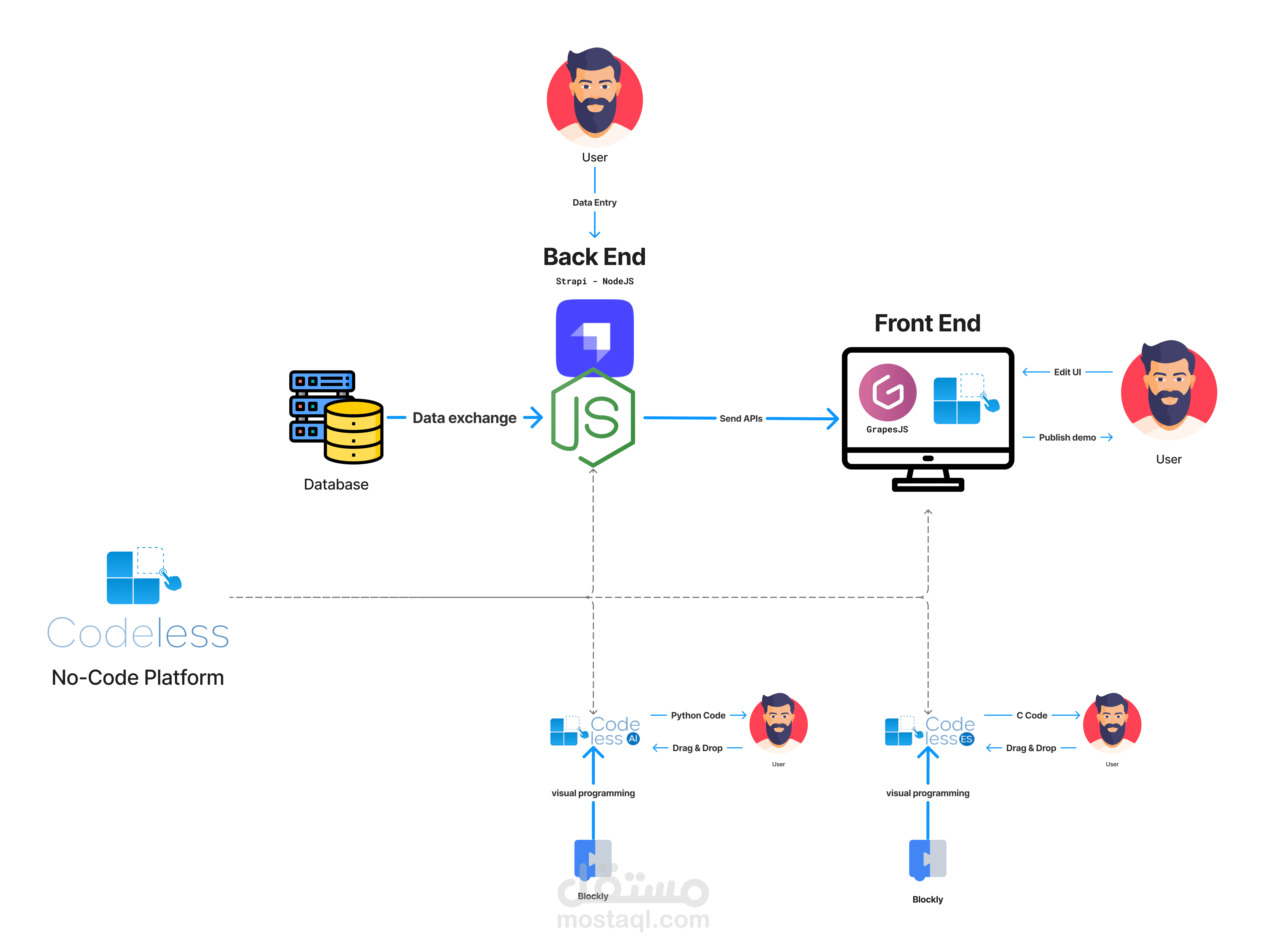 Codeless AI هو جزء من منصة Codeless التي تقوم بانشاء تطبيقات الويب, الموبايل, الأنظمة المدمجة, نماذج الذكاء الإصطناعي.