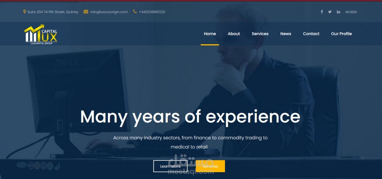 مجموعة من الشركات تحت اسمLux Capital Group في الامارات العربي المتحدة تم تصميم وبرمجة كاملة لموقع تعريفي اعلاني للشركات