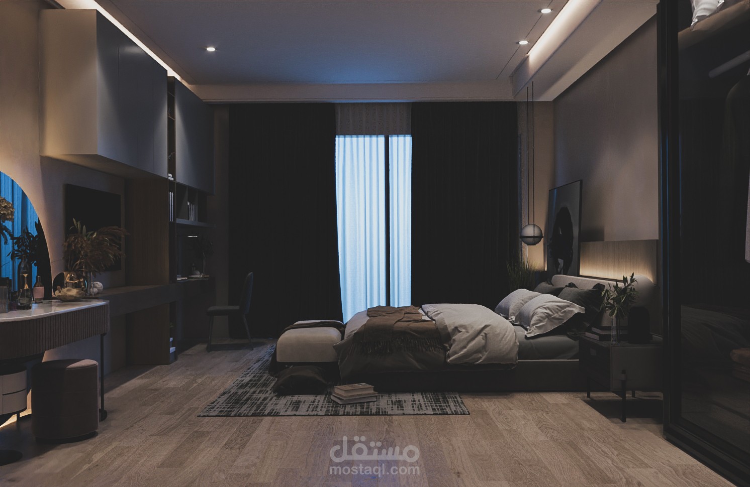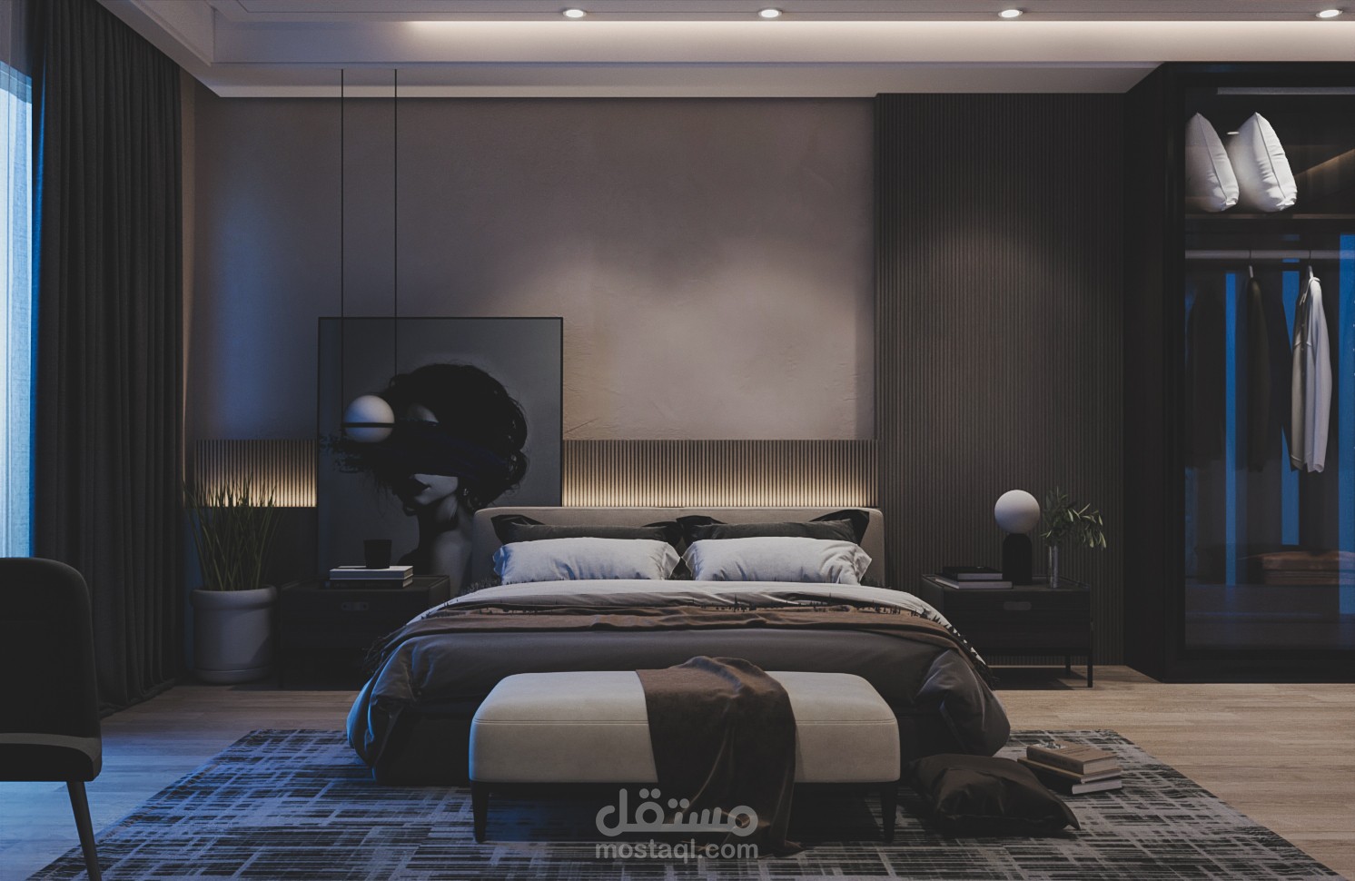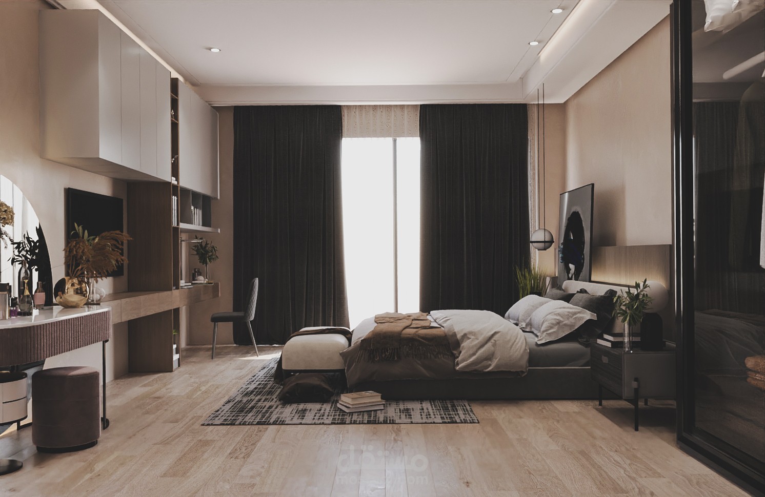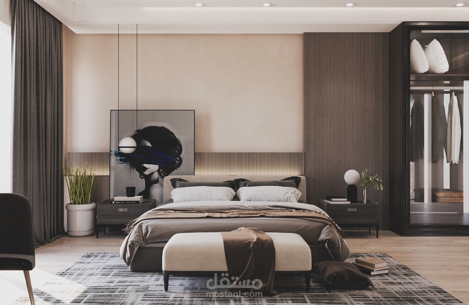 تصميم لغرفة نوم مودرن بالوان دافئة