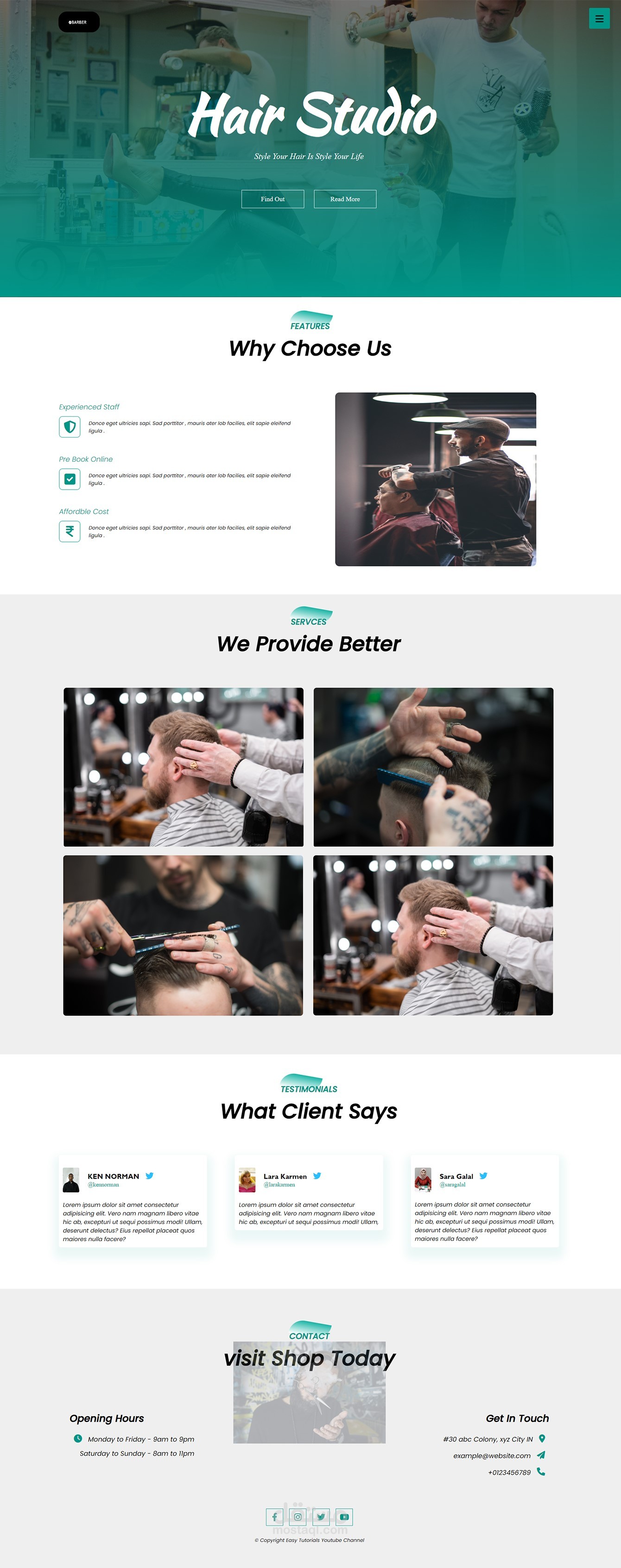 تصميم موقع لصالون حلاقة متجاوب مع جميع الشاشات