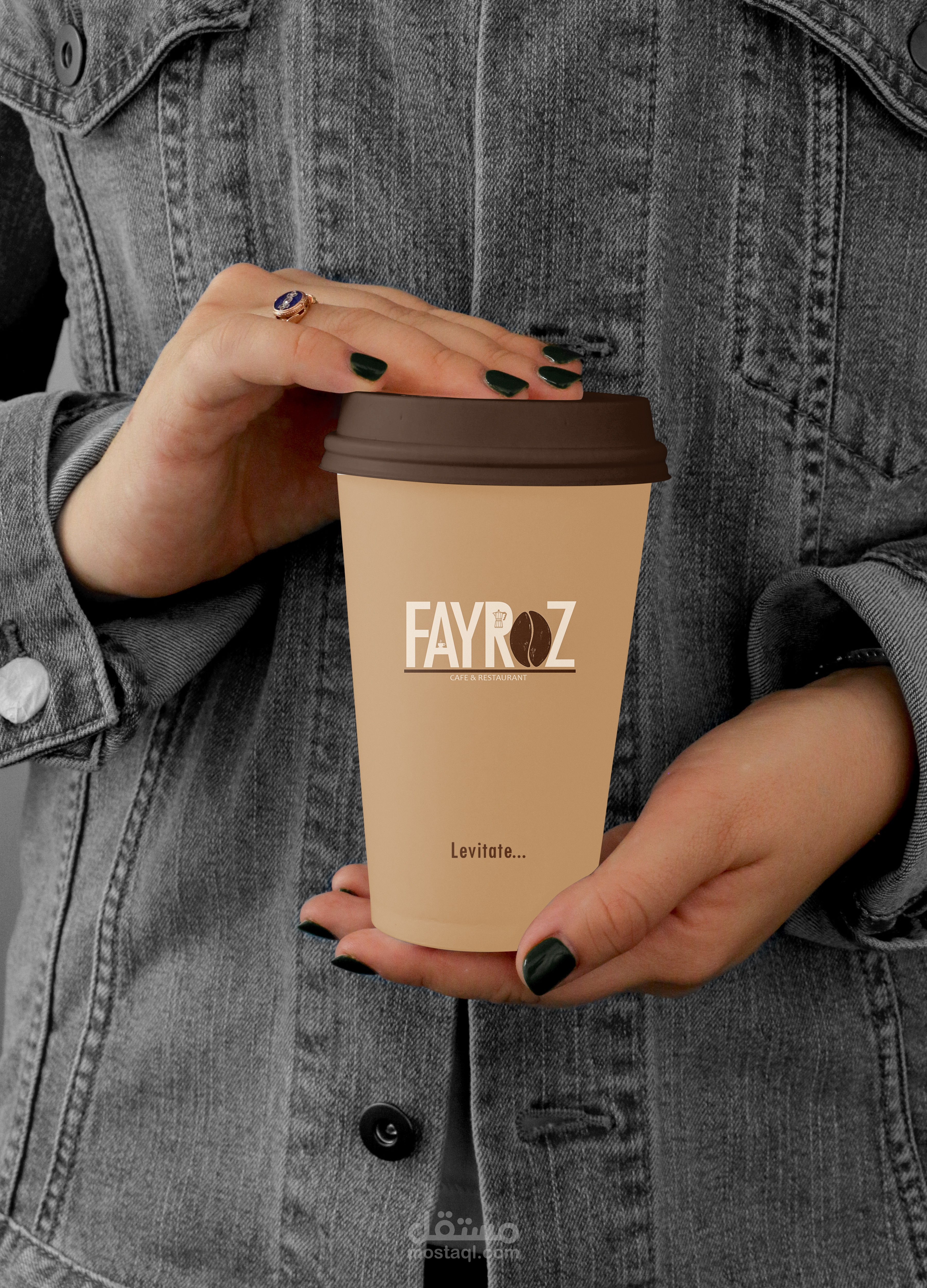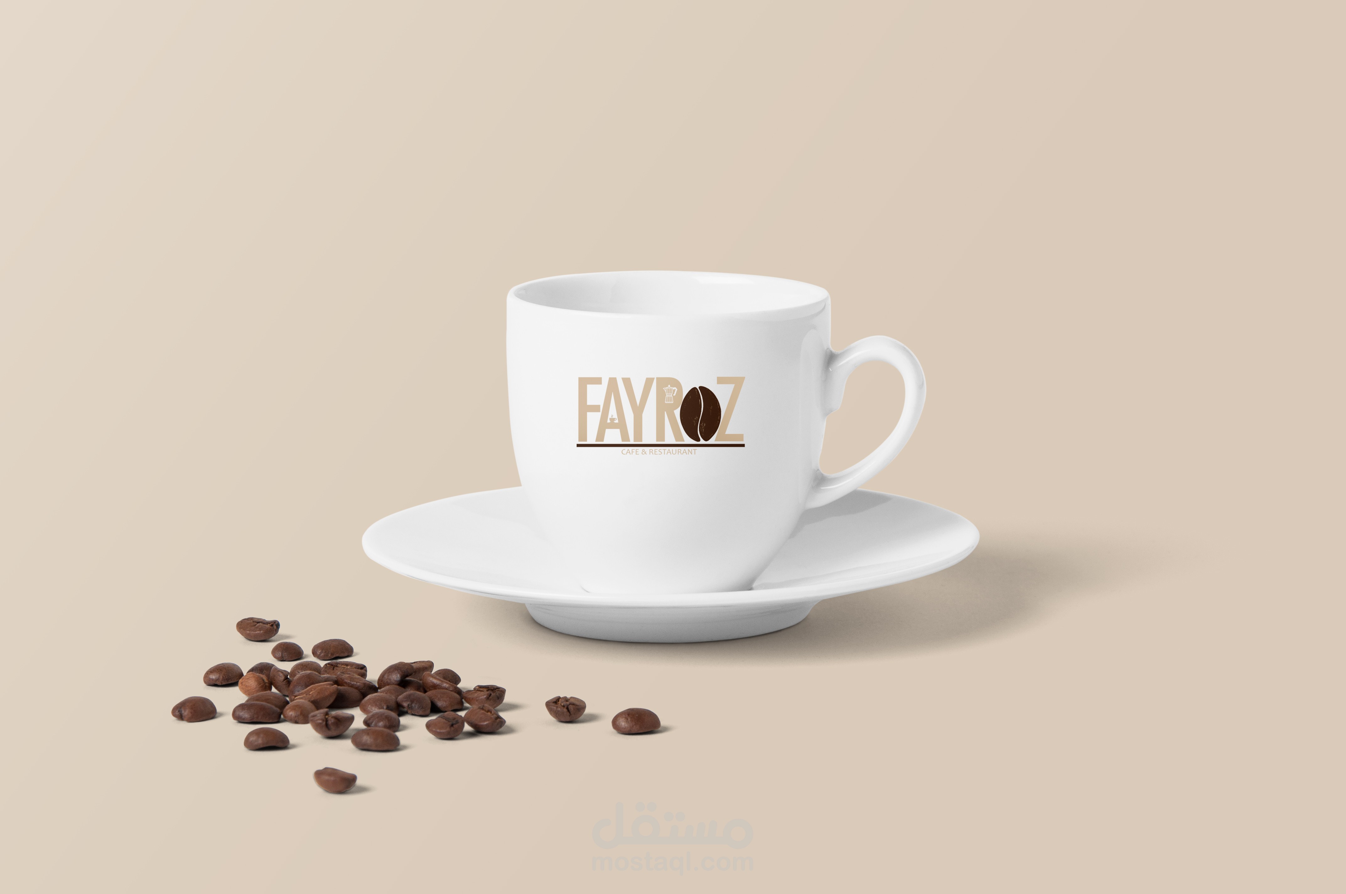 تصميم شعار لكافية فيروز المتخصص في صناعة القهوة و تصميم فنجان خاص له بالاضافه الي اكواب التيك اواي و المجات.