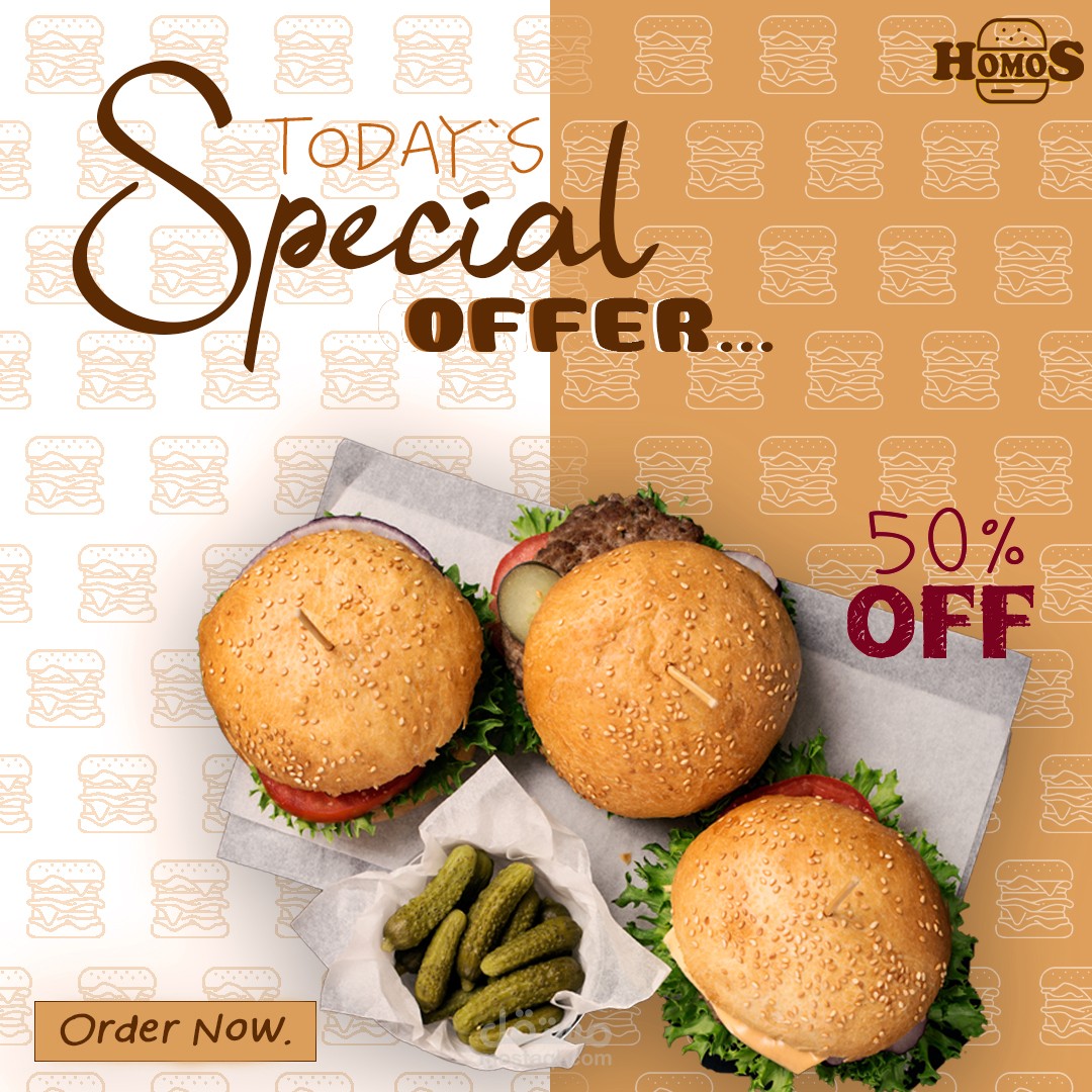 تصميمات سوشيال ميديا لمعم تقديم سندوتشات البرجر
