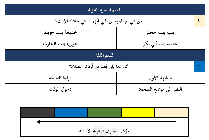 أسئلة دينية إسلامية اختيار من متعدد مع تحديد مستوى الصعوبة، في جميع الأقسام والمجالات والموضوعات الإسلامية {فقه، عقيدة، تاريخ، القرآن الكريم والتفسير، الحديث، السيرة النبوية، ...}، كل سؤال معه 4 خيارات، ويوجد مؤشر يُقيم مستوى صعوبة السؤال، مع ترجمة جميع الأسئلة إلى اللغة الإنجليزية، يصلح لتنفيذ مسابقات أونلاين أو في المدرسة أو دار التحفيظ للأطفال والكبار.