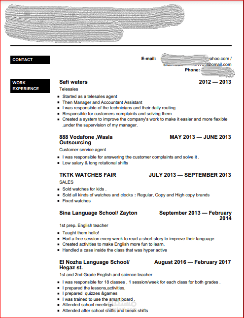 مرسل بعض من اشكال لل CV , لنفس الشخص حتى تستطيع الاختيار ويمكنني التنفيذ في خلال يوم , ارجو ارسال التفاصيل حتى استطيع عمل الCV بشكل جيد