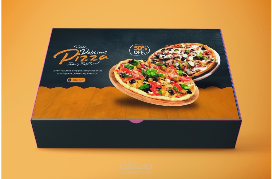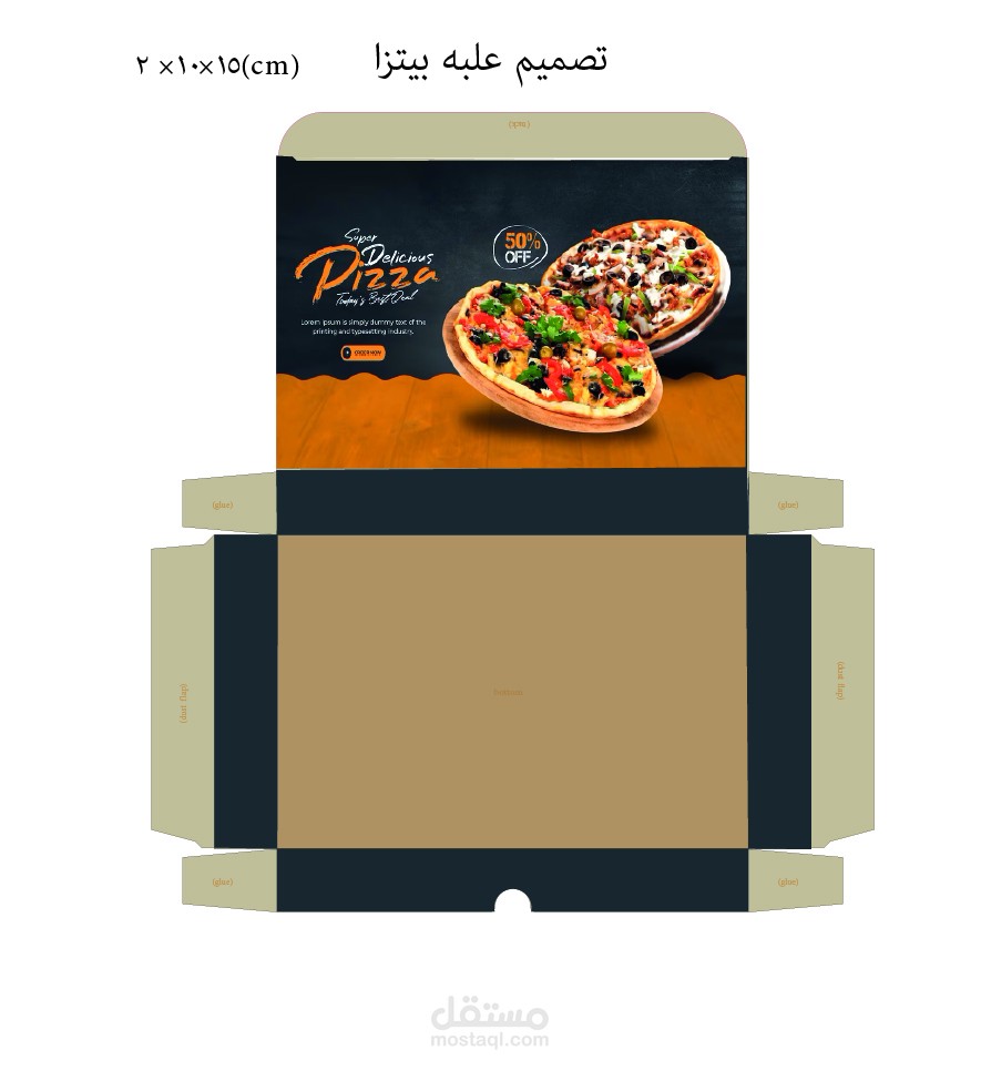 تصميم علبه فطائر ( بيتزا)مقاس 15×20ارتفاع 2 سم جاهزه لوضع الاعلان مع تعديل الالوان