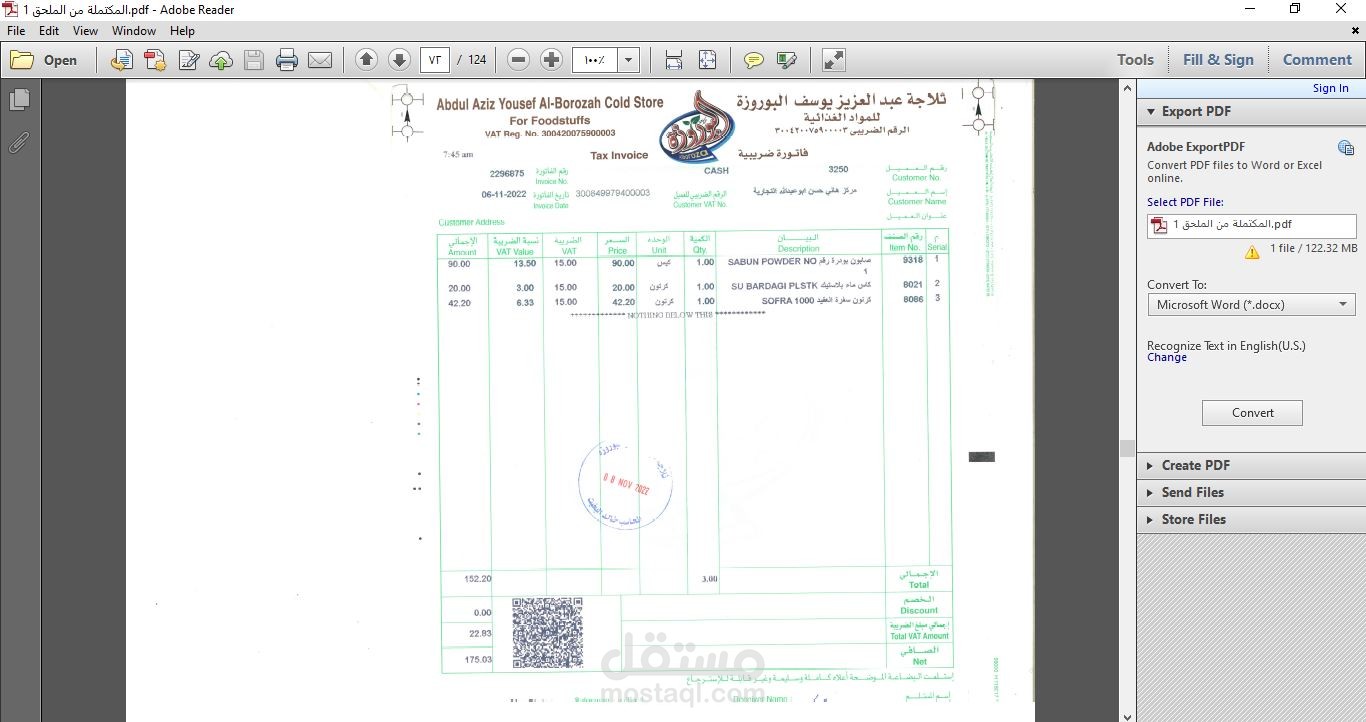 حيث تم مراجعة الفواتير التى تم ارسالها عبر pdf مع ملف الاكسيل المرفق وتم استبعاد واضافة فواتير حسب المراجعة