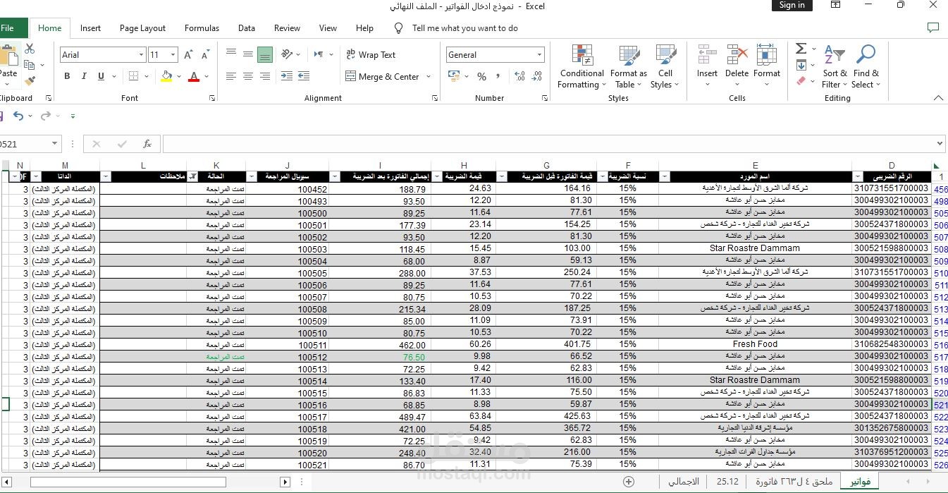 في ذلك العمل تم مراجعة ومطابقة فواتير المشتريات والمصروفات لمؤسسة (مركز هاني للتجارة والتوزيع) في السعودية وذلك لمطابقة واحتساب ضريبة المدخلات عن الفترة الضريبية المستحقة
