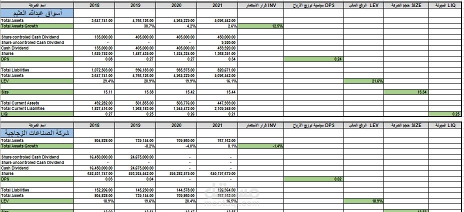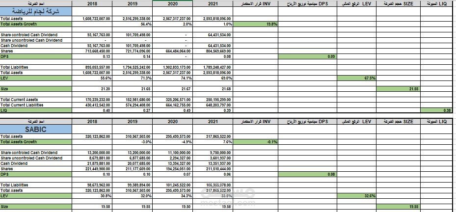 في ذلك العمل تم استخراج بعض البيانات المالية لاحتساب بعض نسب التحليل المالي لتقييم بعض الشركات المدرجة في سوق الأوراق المالية السعودي ولذلك لغرض أكاديمي