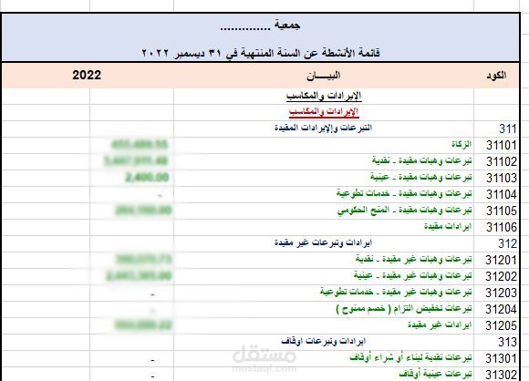 في ذلك المشروع تم إعداد القوائم المالية الختامية لجمعية البر الخيرية بصبيا - منطقة جازان - السعودية حيث تم إعداد قائمة الأنشطة وقائمة المركز المالي عن الفترة المنتهية 2022 وتم إجراء التحليل المالي للقوائم بأستخدام بعض النسب وذلك وفقا ما يتلائم مع النشاط الخيري للجمعية.