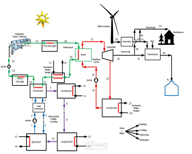 تصميم ومحاكاة وعمل تقرير كامل لمحطة هجينةة تتكون من 17 معدة وتحت ظروف مدينة معينة وادخال مواد معينة