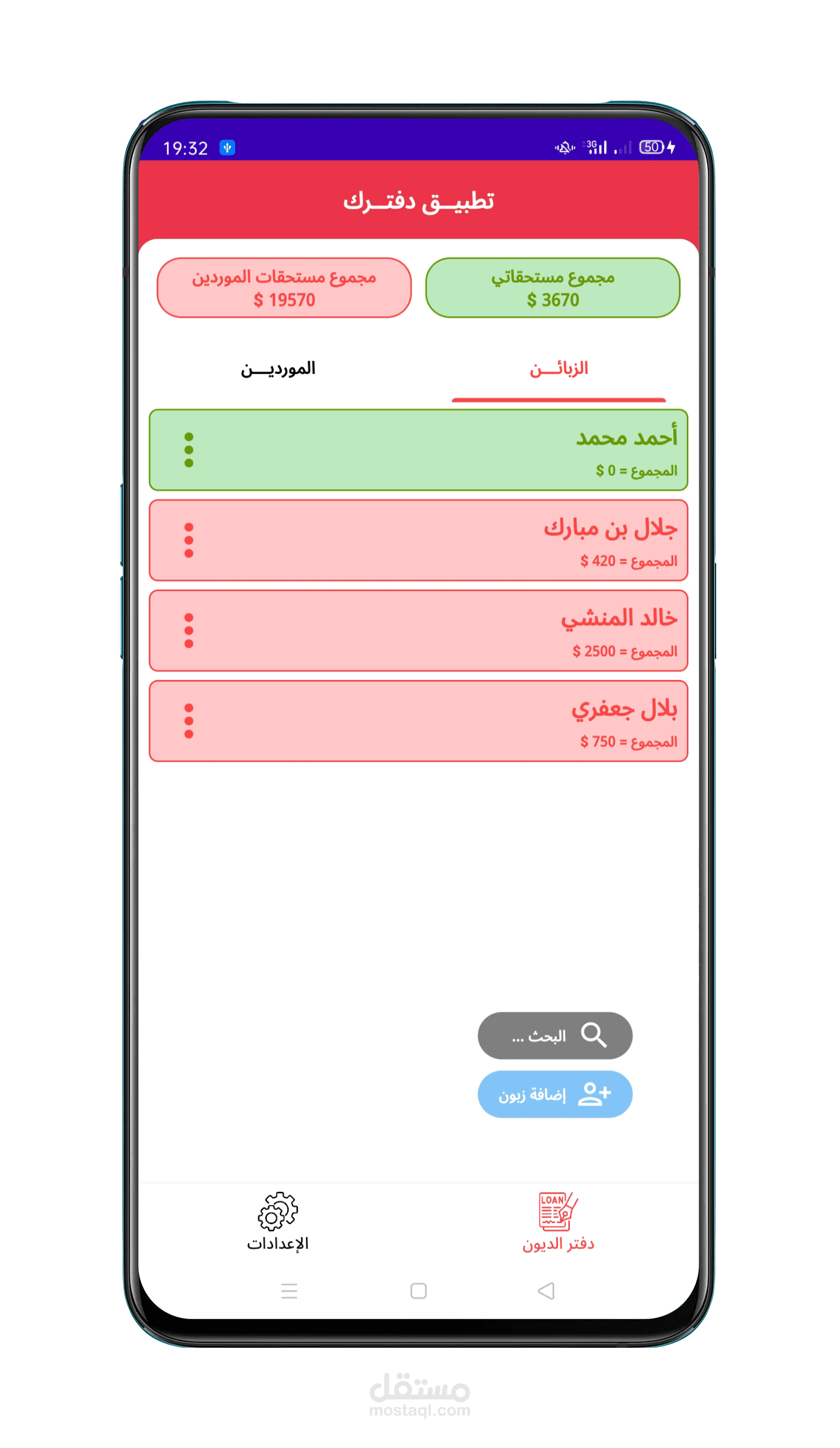 - يحسب الديون تلقائيا مما يسرع عملية التسديد.