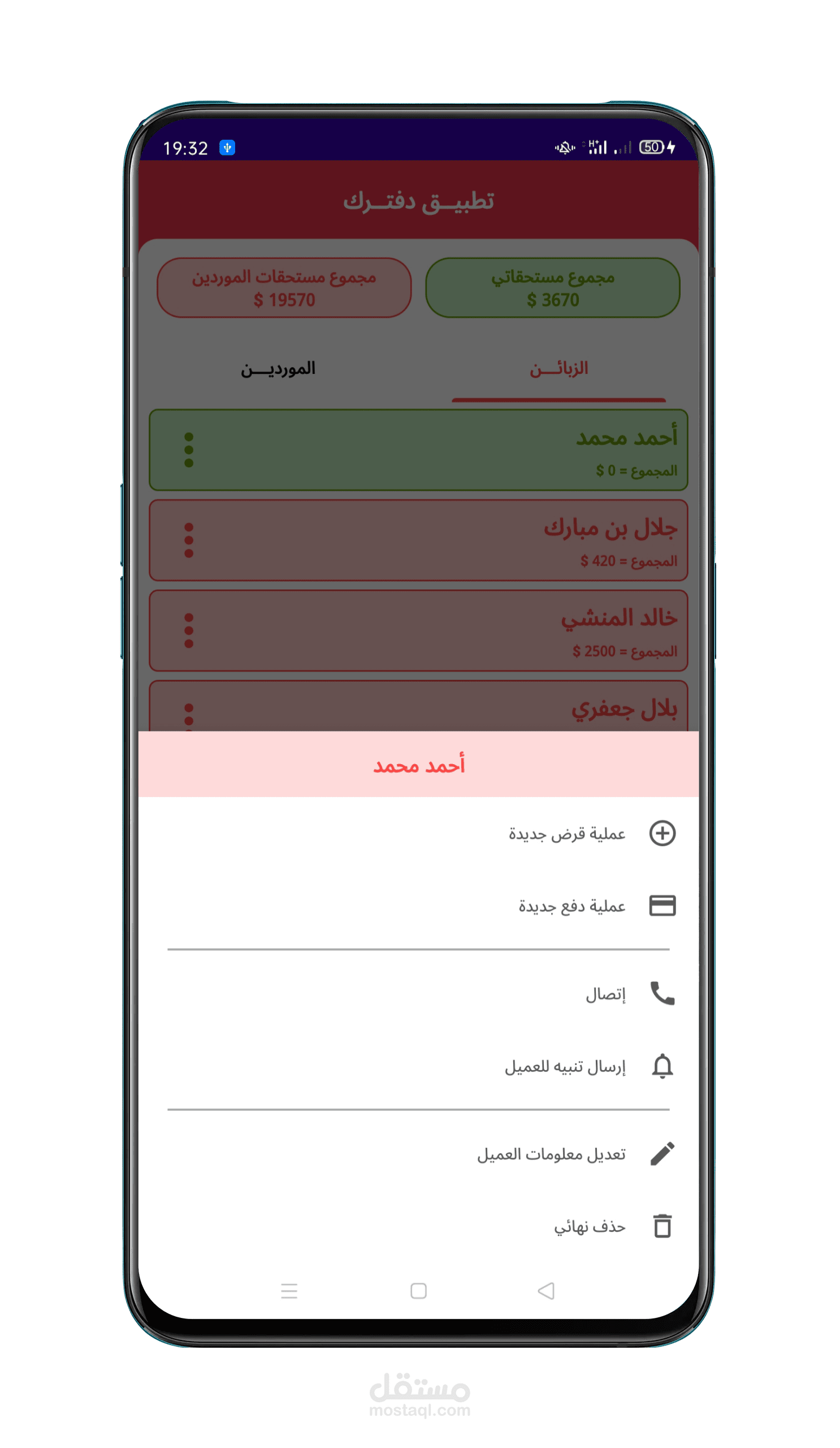 دفتـرك هو تطبيق لتسجيل كل المعاملات المالية والقروض في تجارتك سواء بينك وبين الزبائن أو بينك وبين الموردين.