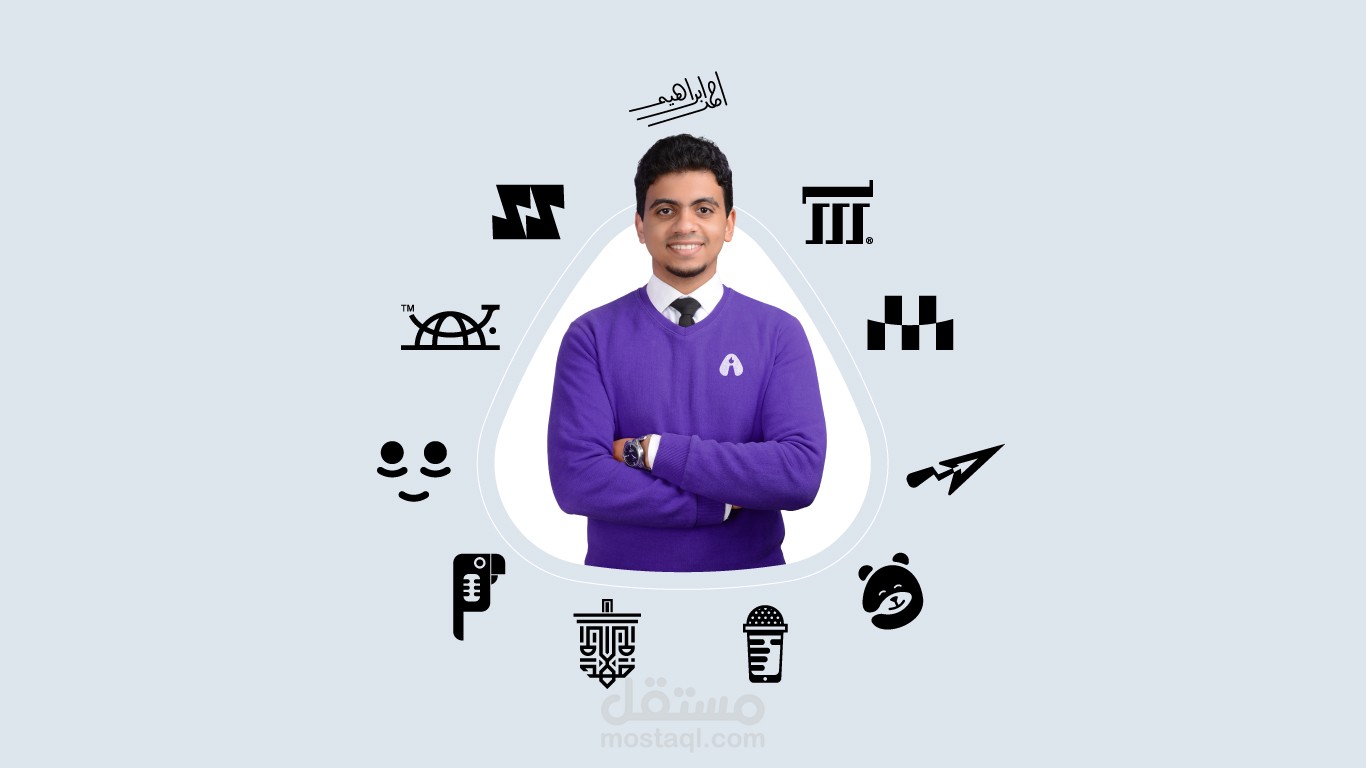 مجموعة من الشعارات لبراندات مختلفة من تصميمي ( العرض بالابيض والاسود )