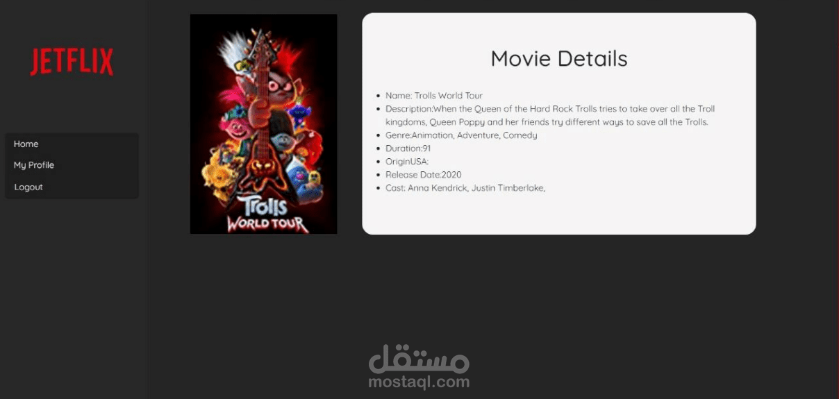 يوفر الموقع مجموعة من الميزات لتحسين تجربة مشاهدة الأفلام لمستخدمينا. لبدء, يمكن للمستخدمين التسجيل بسهولة وإنشاء حساب شخصي، مما يتيح لهم حفظ تفضيلاتهم وتتبع تاريخ مشاهدة الأفلام. بالنسبة للمستخدمين الحاليين، يوفر خاصية الدخول السريع والآمن الوصول إلى حسابهم. على المنصة، يمكن للمستخدمين مشاهدة معلومات مفصلة عن أفلامهم المفضلة، بما في ذلك معلومات عن الطاقم والشخصيات، وملخصات الأحداث، وتصنيفات المستخدمين. يوفر أنظمة تصنيف الأفلام للمستخدمين تصنيف الأفلام والتعليق عليها، ما يوفر ردود فعل ذات قيمة للمستخدمين الآخرين ويساعدهم في تحديد القرارات المعتمدة عند مشاهدة الأفلام. خاصية البحث هي أداة قوية، تتيح للمستخدمين العثور بسرعة على الأفلام عن طريق العنوان او جزء منه.