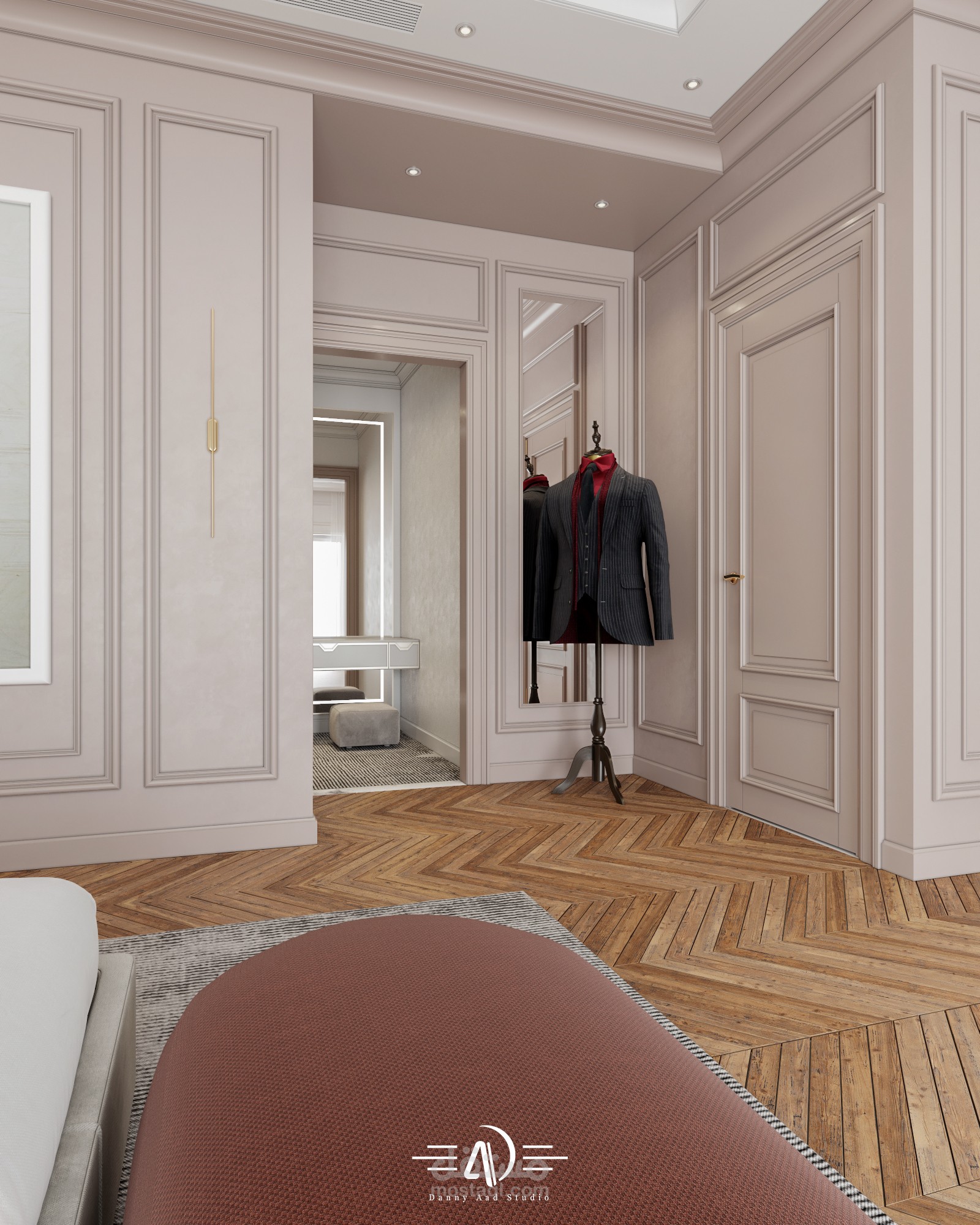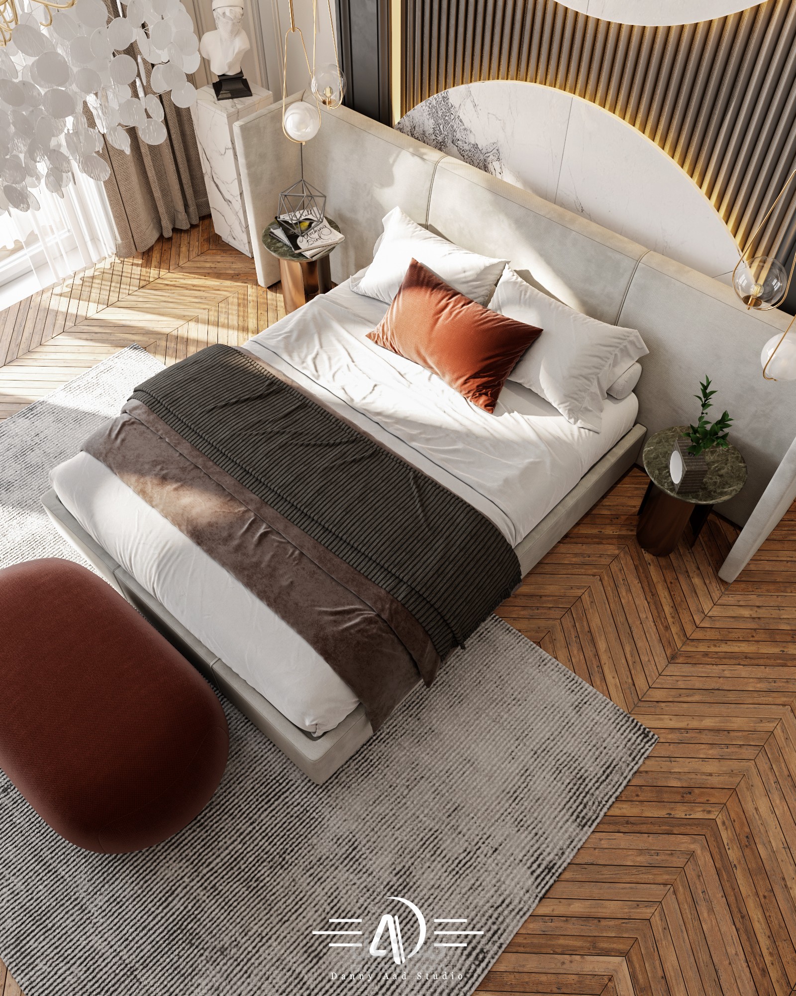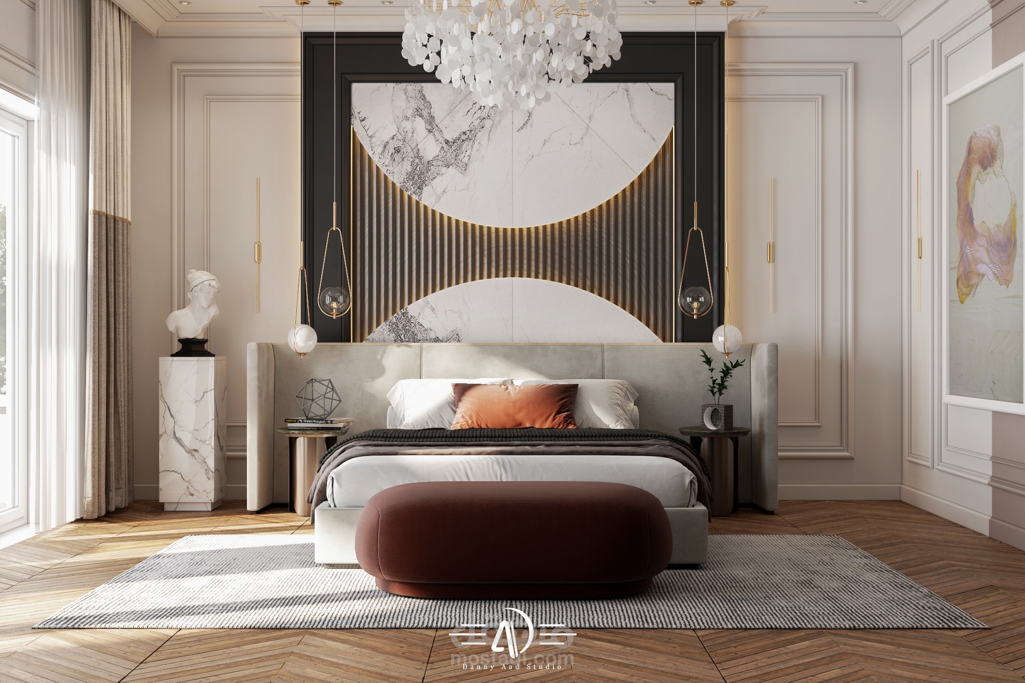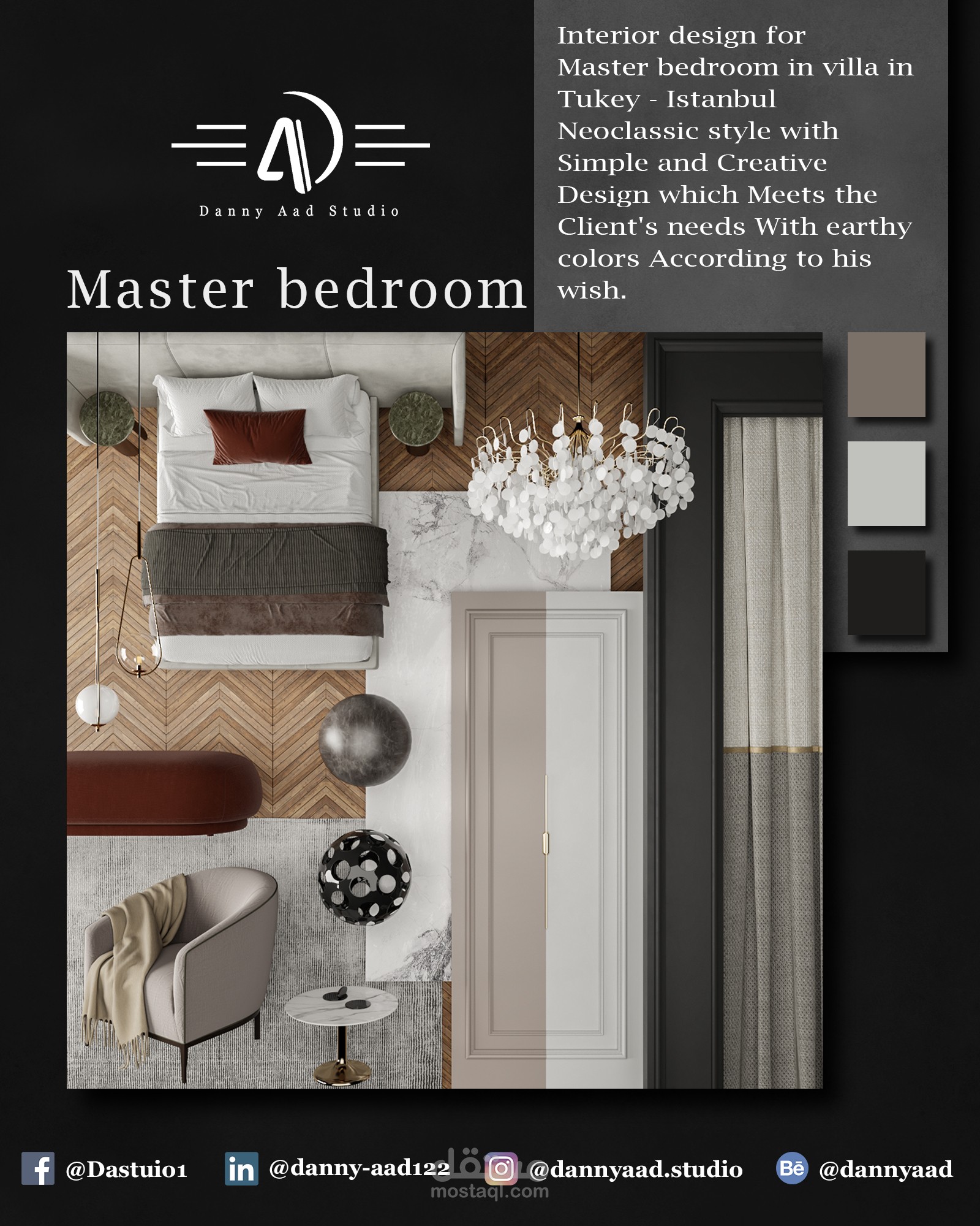interior design for Master Bedroom in villa in Tukey - Istanbul modern style with simple and creative design which Meets the client's needs with earthy colors according to his wish.