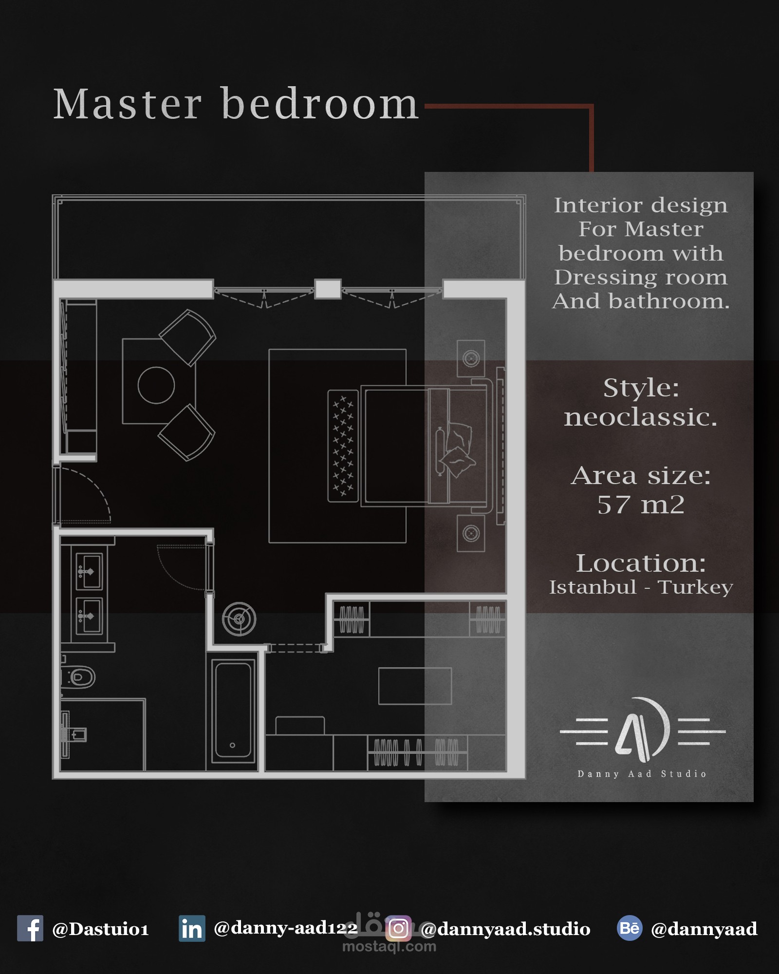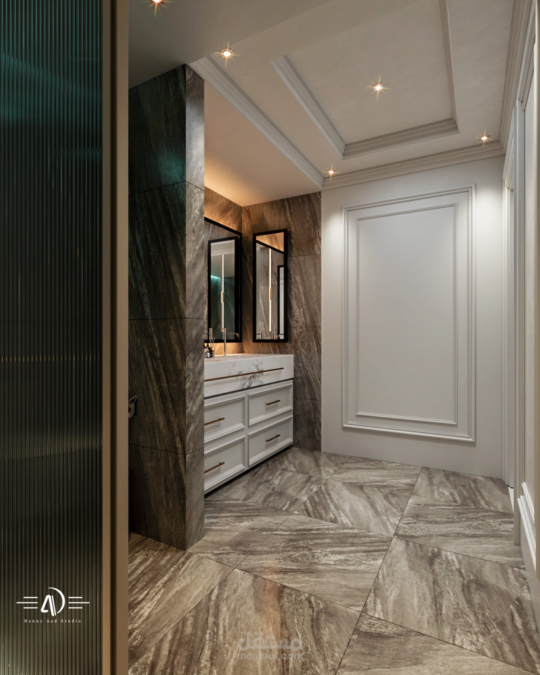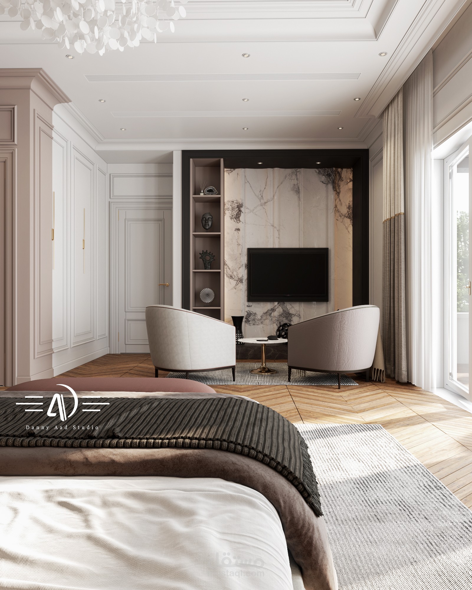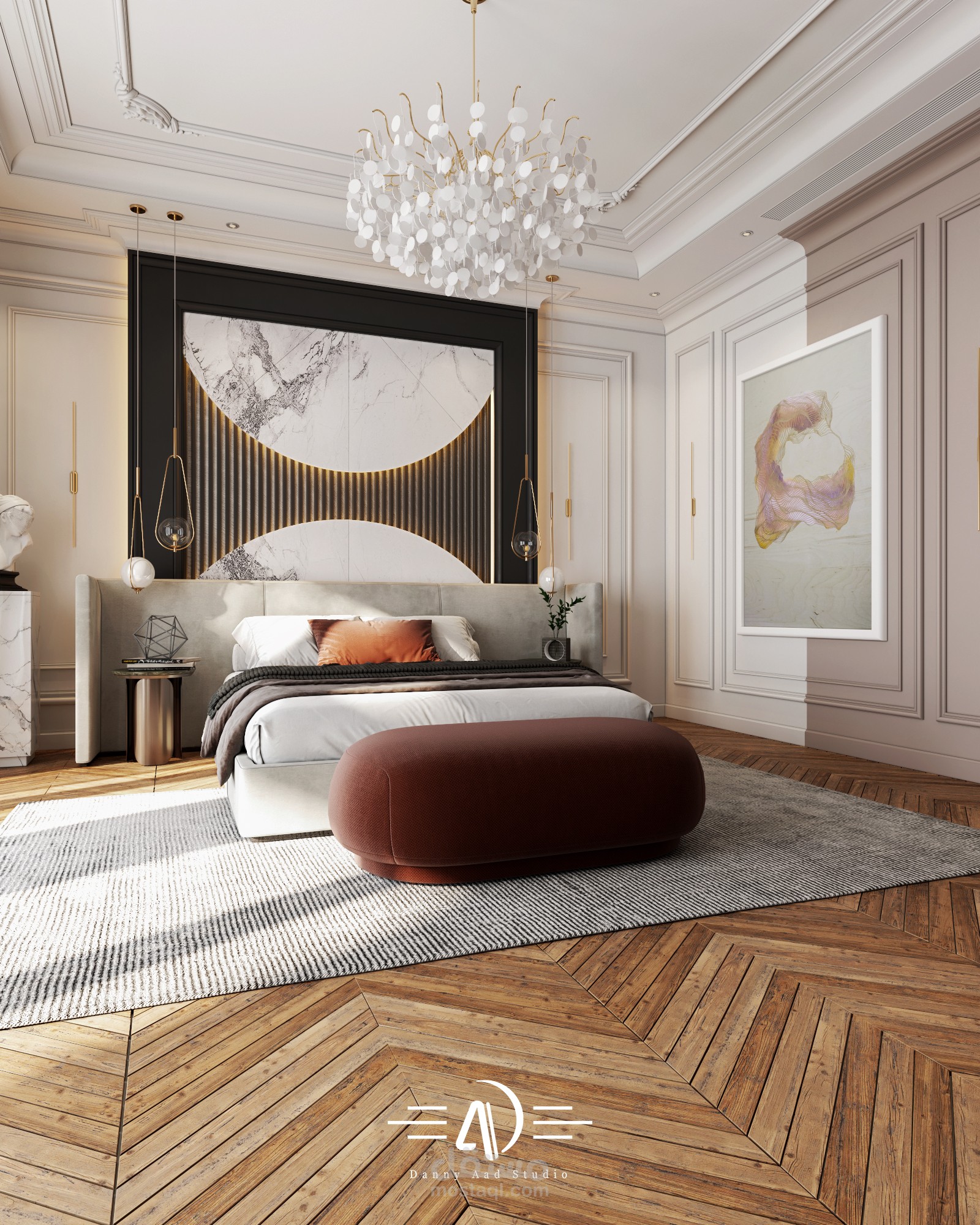 interior design for Master Bedroom in villa in Tukey - Istanbul modern style with simple and creative design which Meets the client's needs with earthy colors according to his wish.