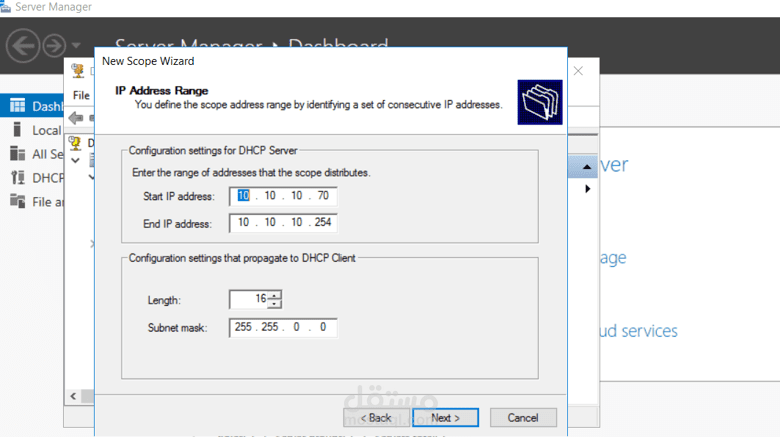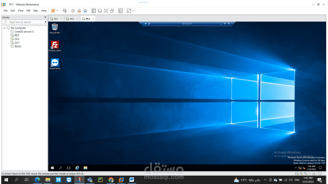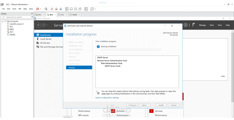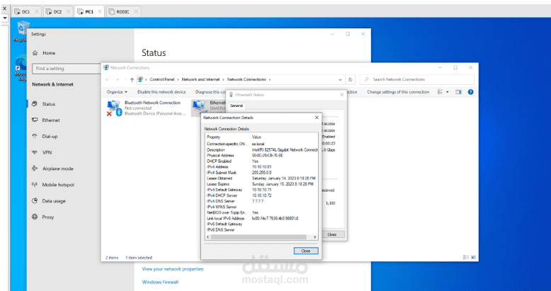 يحتوي المشروع على 2 Active Directories و هم DC1 , DC2 و يحتوي DC2 على DHCP Scope و كذلك PC1 هي Windows 10 client