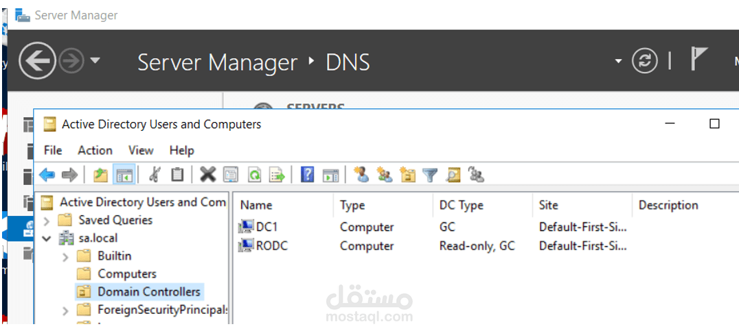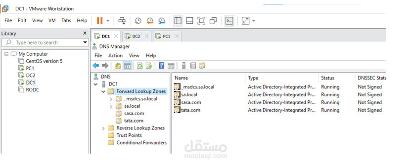 تنضم ال Domain و كذلك تـأخذ IP and other configuration من ال DHCP . ال DC1 يحتوي على Two DNS zones و هم (sasa.com )