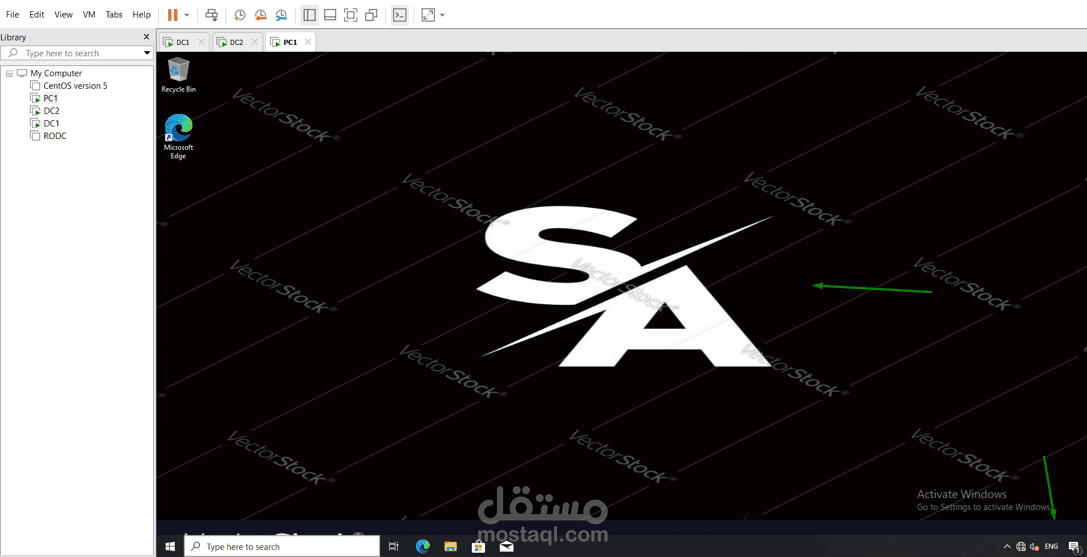 - الثانيه تقوم بإمكانيه دخول Standard user و أتصاله عن بعد ب Domain controller و هو ال DC1 بإستخدام group policy تم تطبيقها على مستوى ال Domain