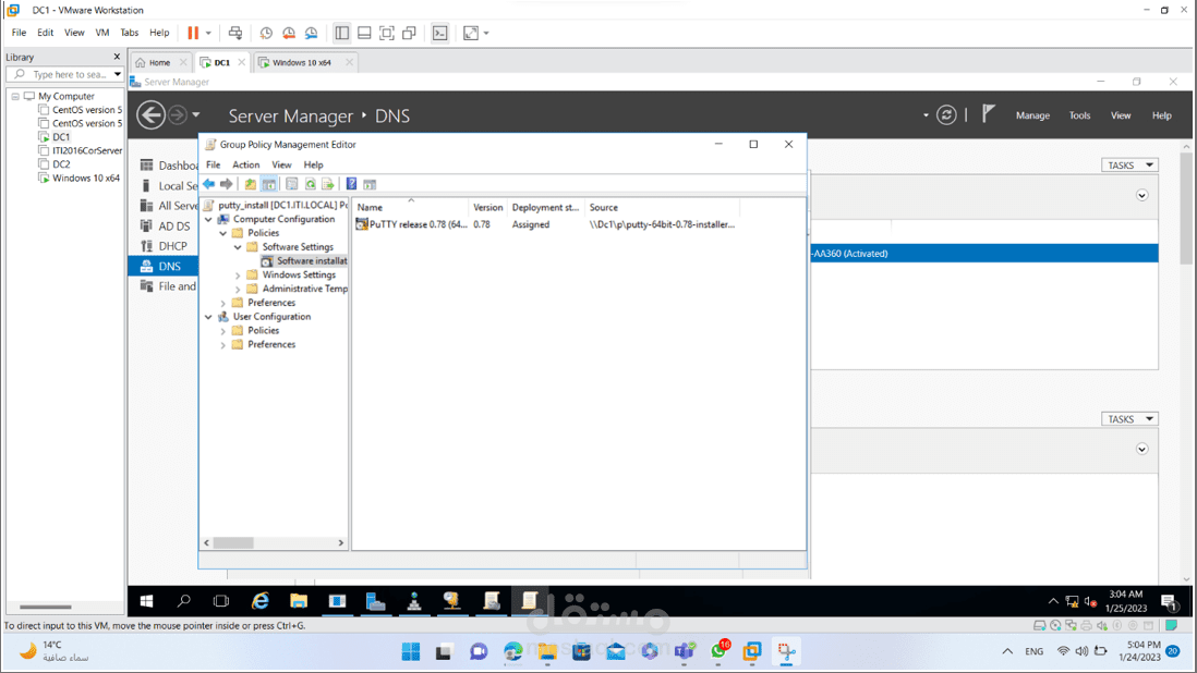 - الثالثه تقوم بتنزيل ال PUTTY tool للمستخدم عند إنضمامه لل Domain من خلال ال PC1 بمجرد دخوله