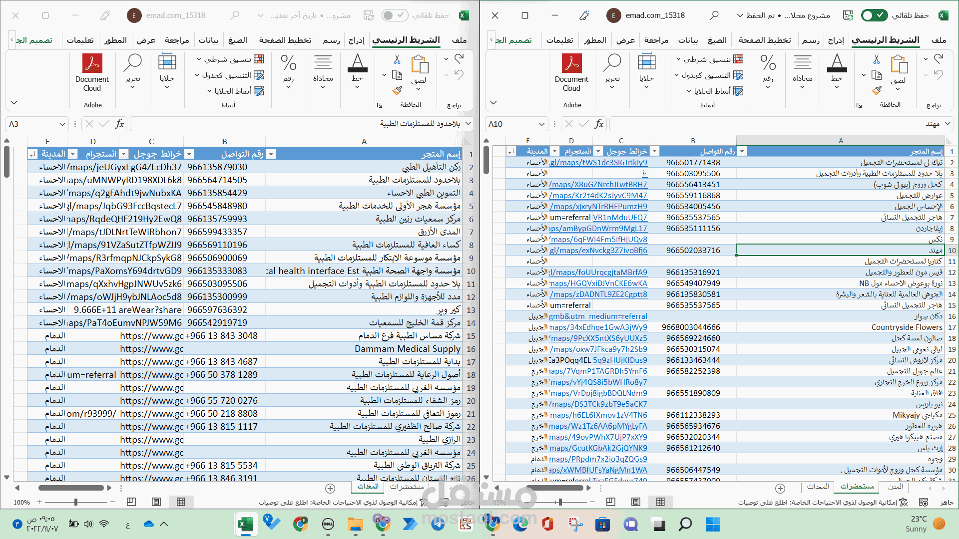 وقد تم جمع 600 شركة ومتجر وتسليمهم في ملف اكسل