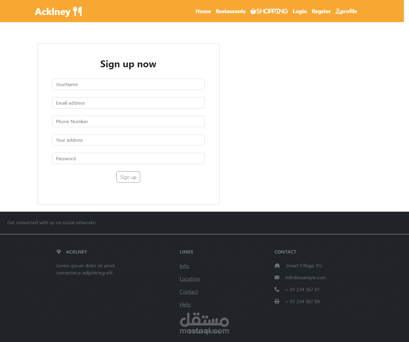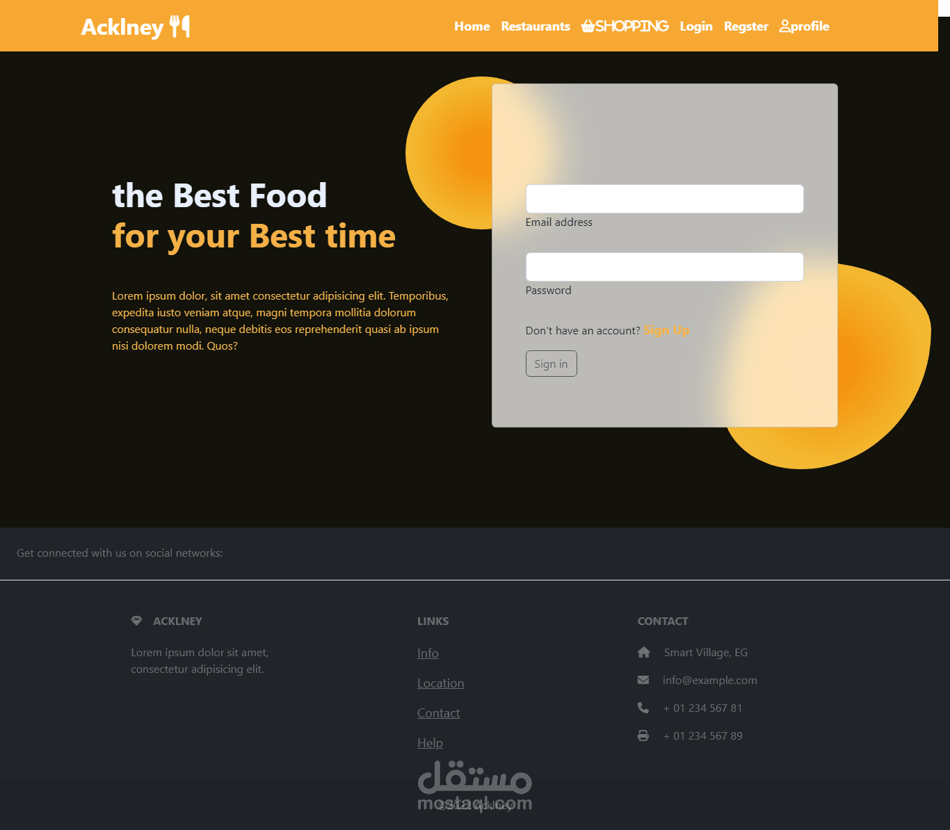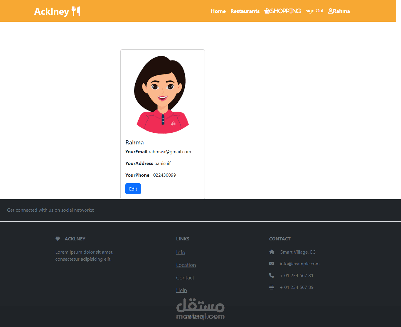 تم تصمييم موقع بحتوي علي 6 مطاعم لمنطقه بني سويف يممكن للمستخدم طلب الاكل الي يريده واتمام عمليه الدفع من خلال الويبسايت ويمكن للادمن اضافه اكلات جديده