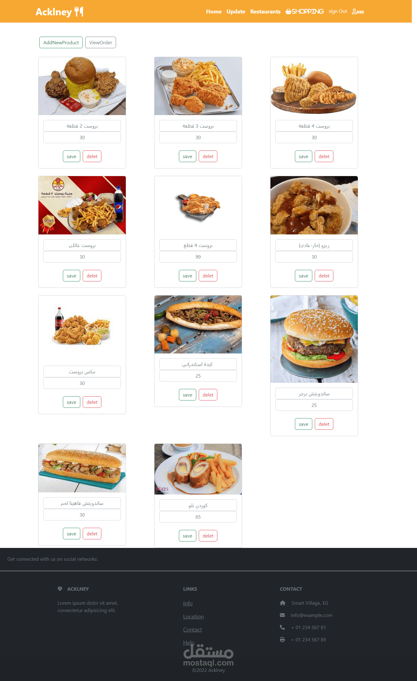 وحذف اكلات وتعديل علي اسم الاكله وسعرها