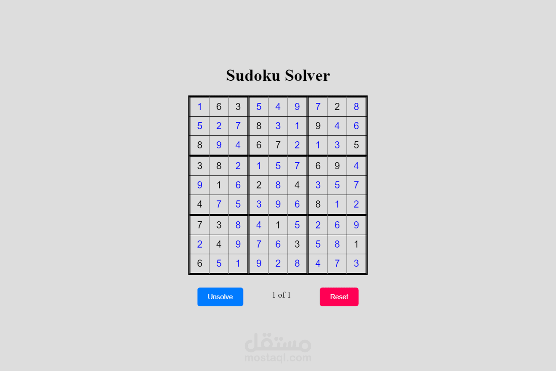 قمت بإنشاء web application لحل لعبة Sudoku