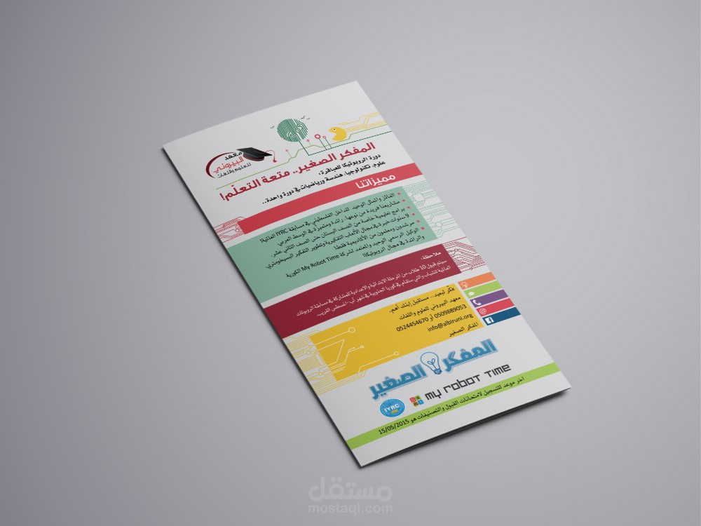 تصميم فلير (المفكر الصغير) لمركز مختص في دورات وتعليم الاطفال في مجال الروبوت والالكترونيات المتعلقه به...