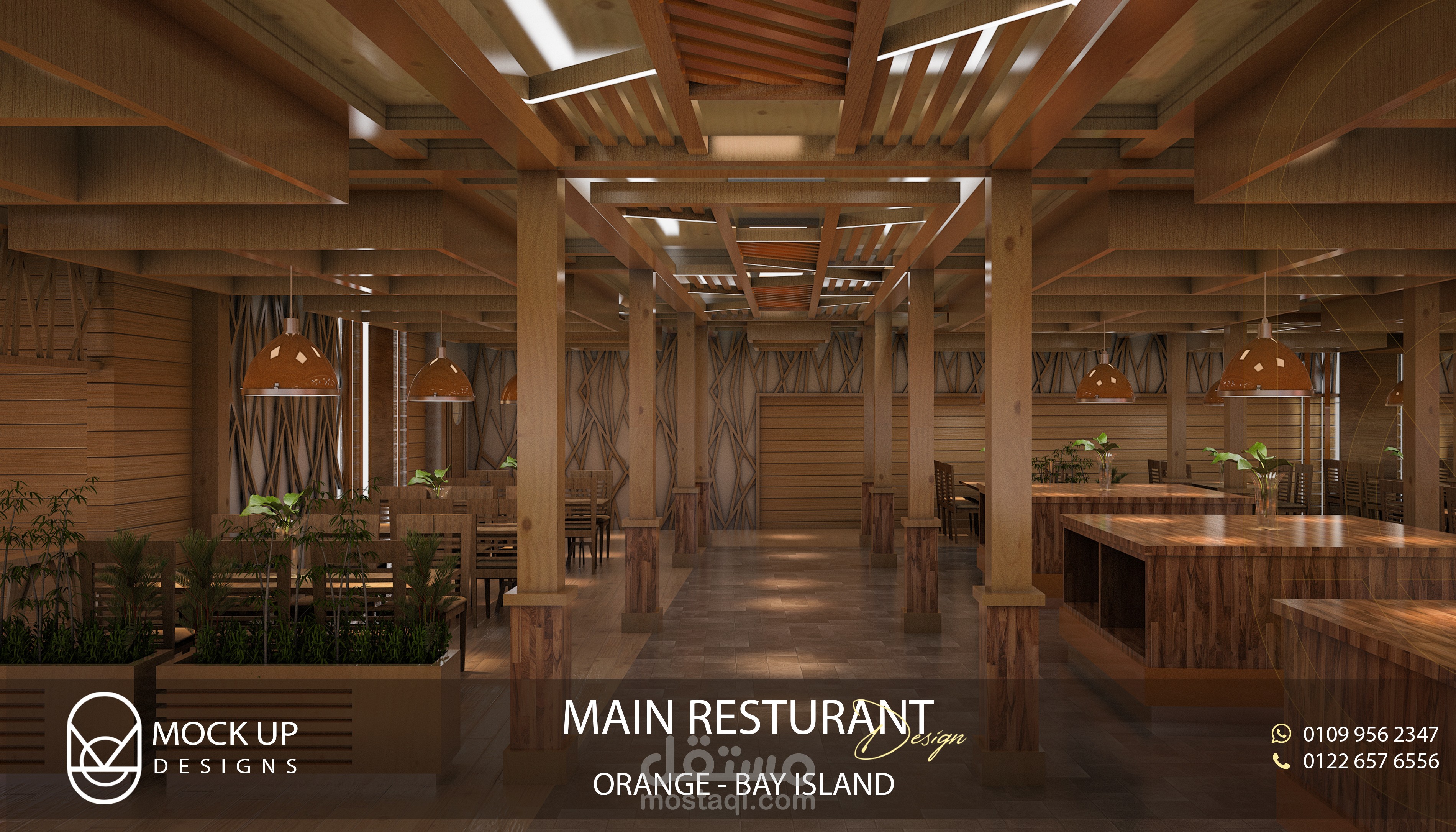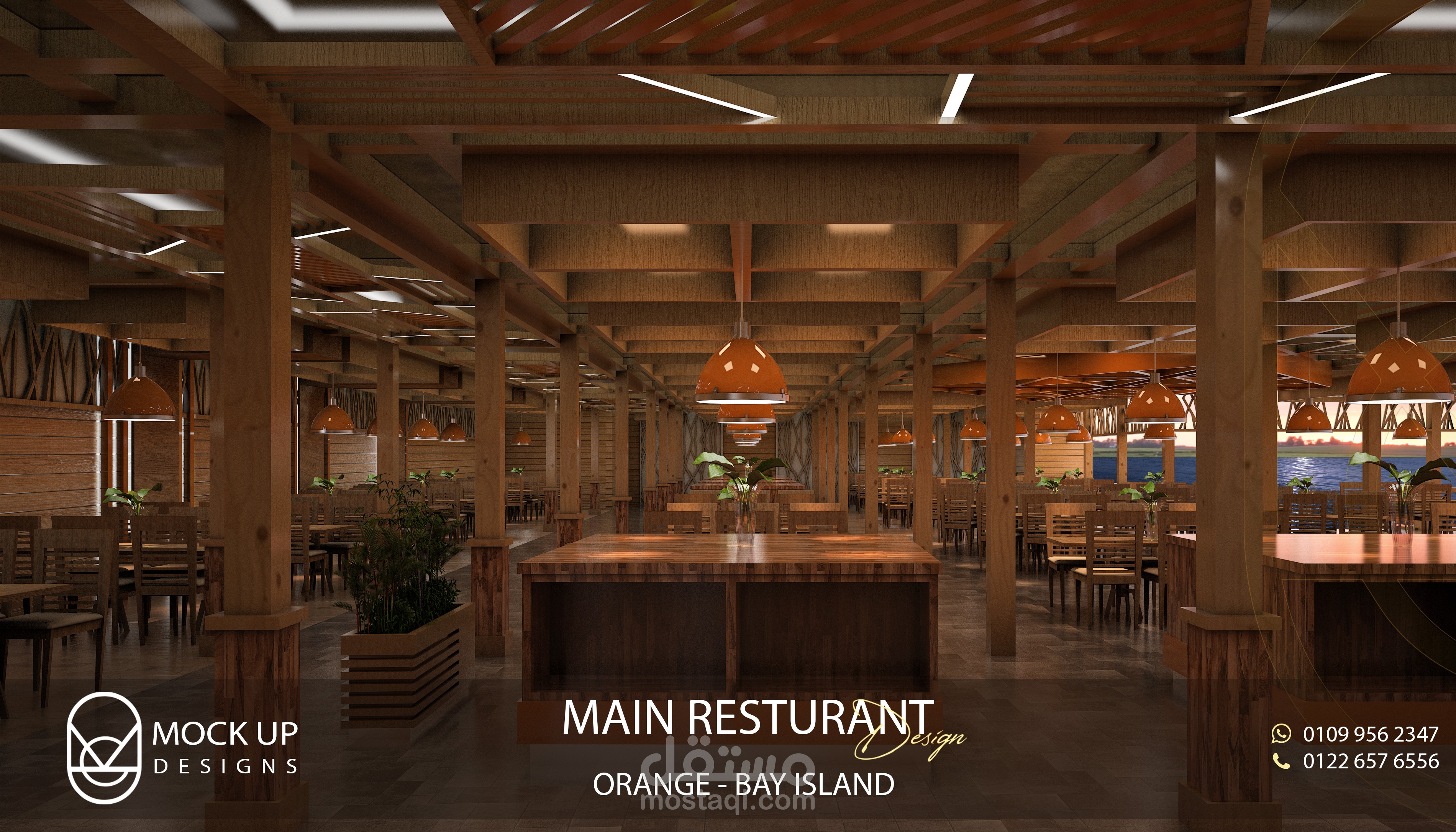 تصميم داخلي لمطعم اوبن بوفية بقرية اورنج باي بالجونة ، الغردقة ،مصر